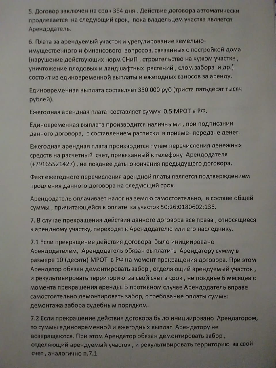 6. Человек захотел за 1 метр участка земли, 350 000 рублей в год, на что получил отказ, так как всё это можно решить законным путём, остался без ничего