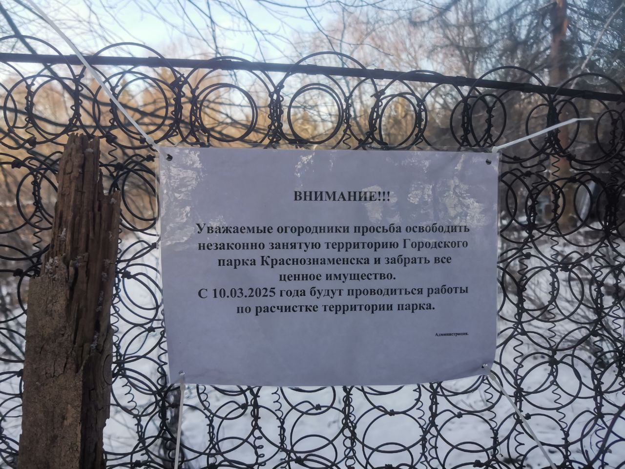 Просьба к огородникам с пониманием отнестись к принимаемым мерам, оказать содействие и заблаговременно забрать всё ценное имущество с вышеуказанной территории.