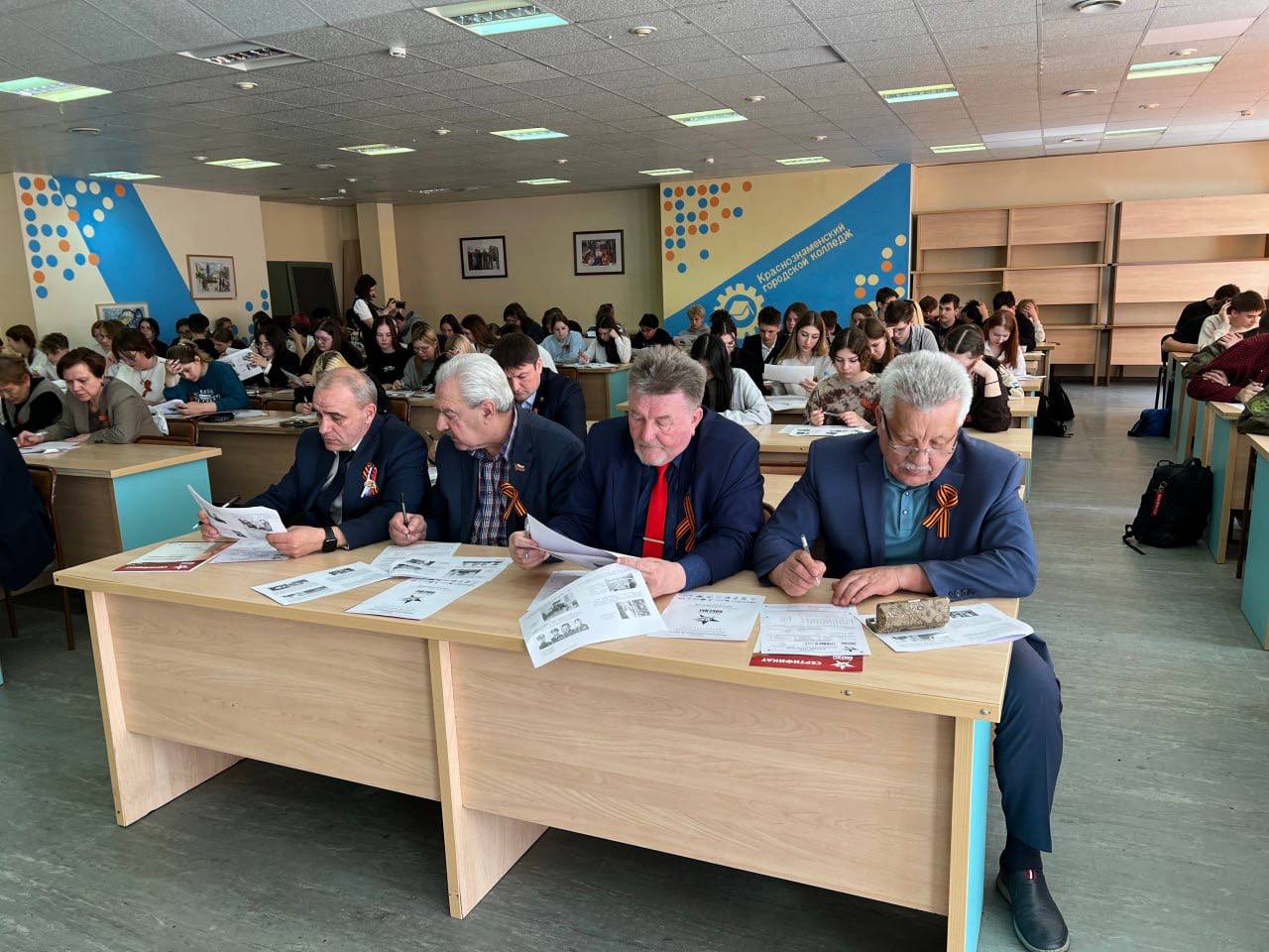 «Диктант Победы» проходит уже седьмой год подряд. В Центр профессионального образования пришли проверить свои знания истории Великой Отечественной войны более 100 участников. Они ответили на 25 вопросов, посвящённых ключевым военным событиям, судьбам выдающихся героев, а также произведениям искусства и литературы, вдохновлённым подвигом народа в годы войны.