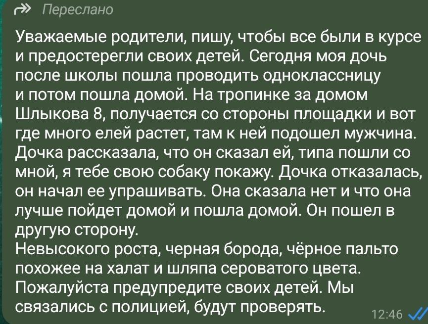 И Тк это произошло около 4й школы, считаю правильным оповестить всех родителей и детей.