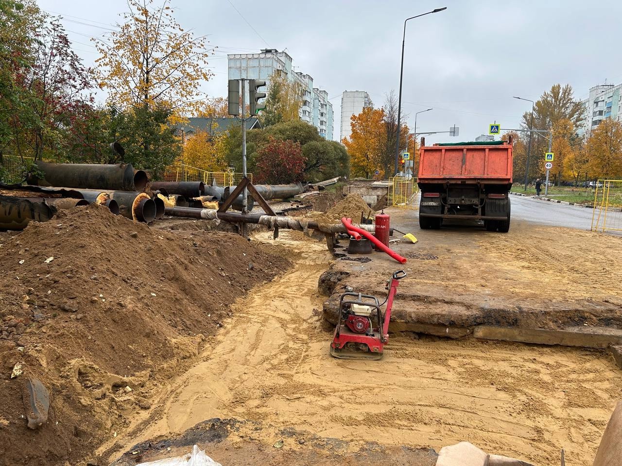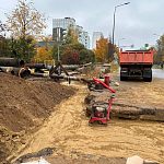 Активно идут работы по капитальному ремонту тепловой сети: разработка грунта с вывозом, монтаж труб в стальном футляре, просвет стыков, засыпка песком.