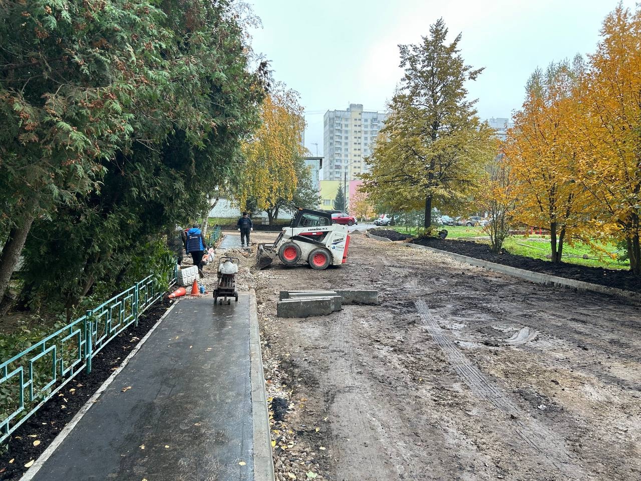 На ул. Победы, д. 2, 4 и ул. Связистов проводятся работы по модернизации асфальтного покрытия дворовой территории до 30 октября.