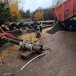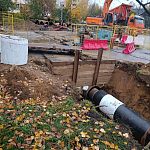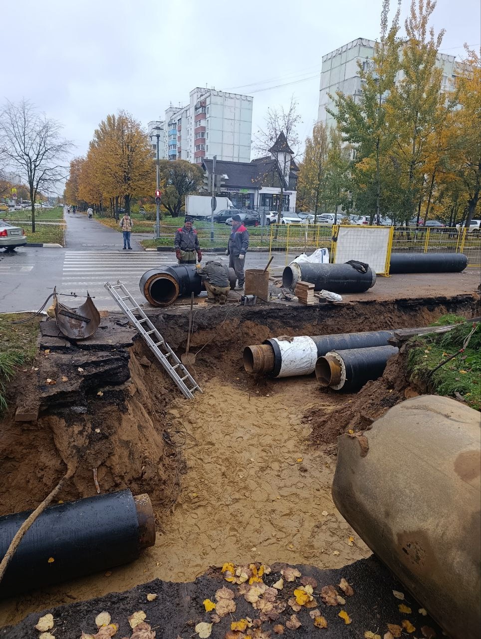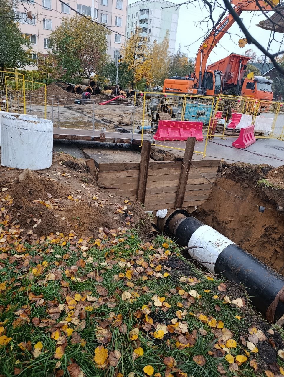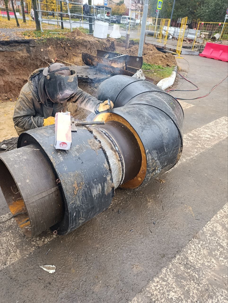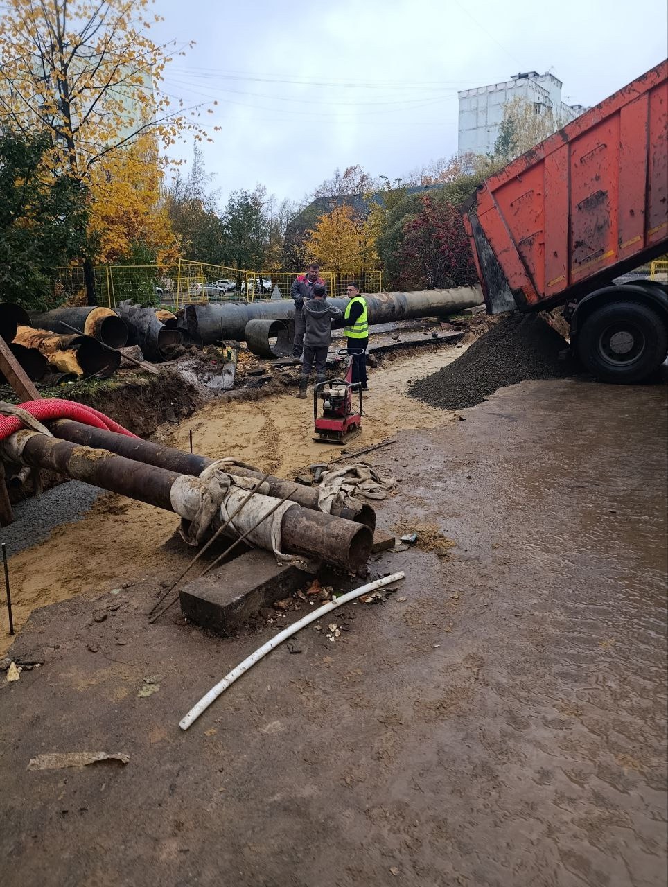 На территории ремонта теплотрассы продолжаются работы по разработке грунта с вывозом, монтажу труб в стальном футляре, просвету стыков и засыпке песком.