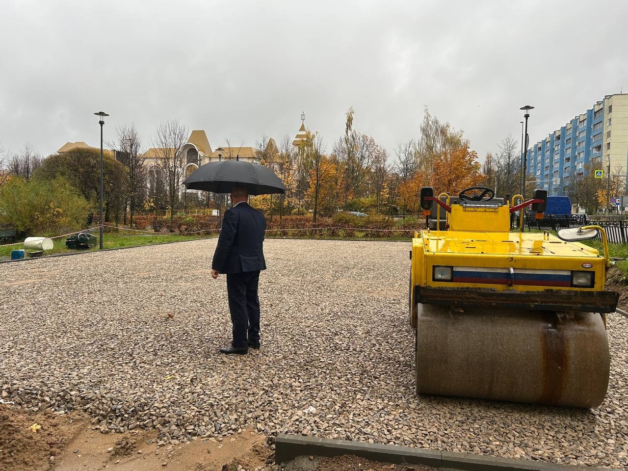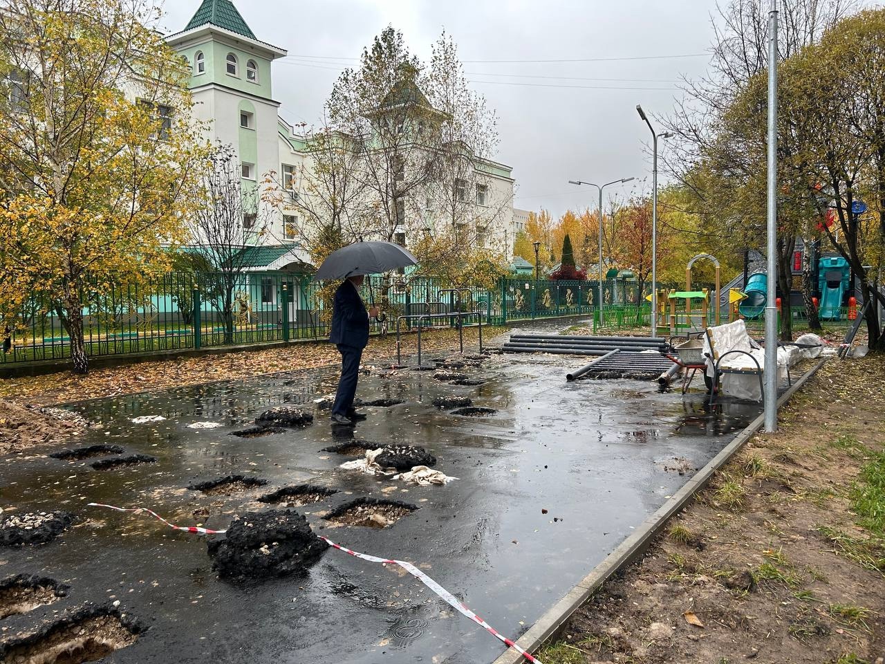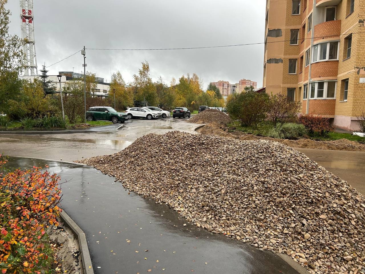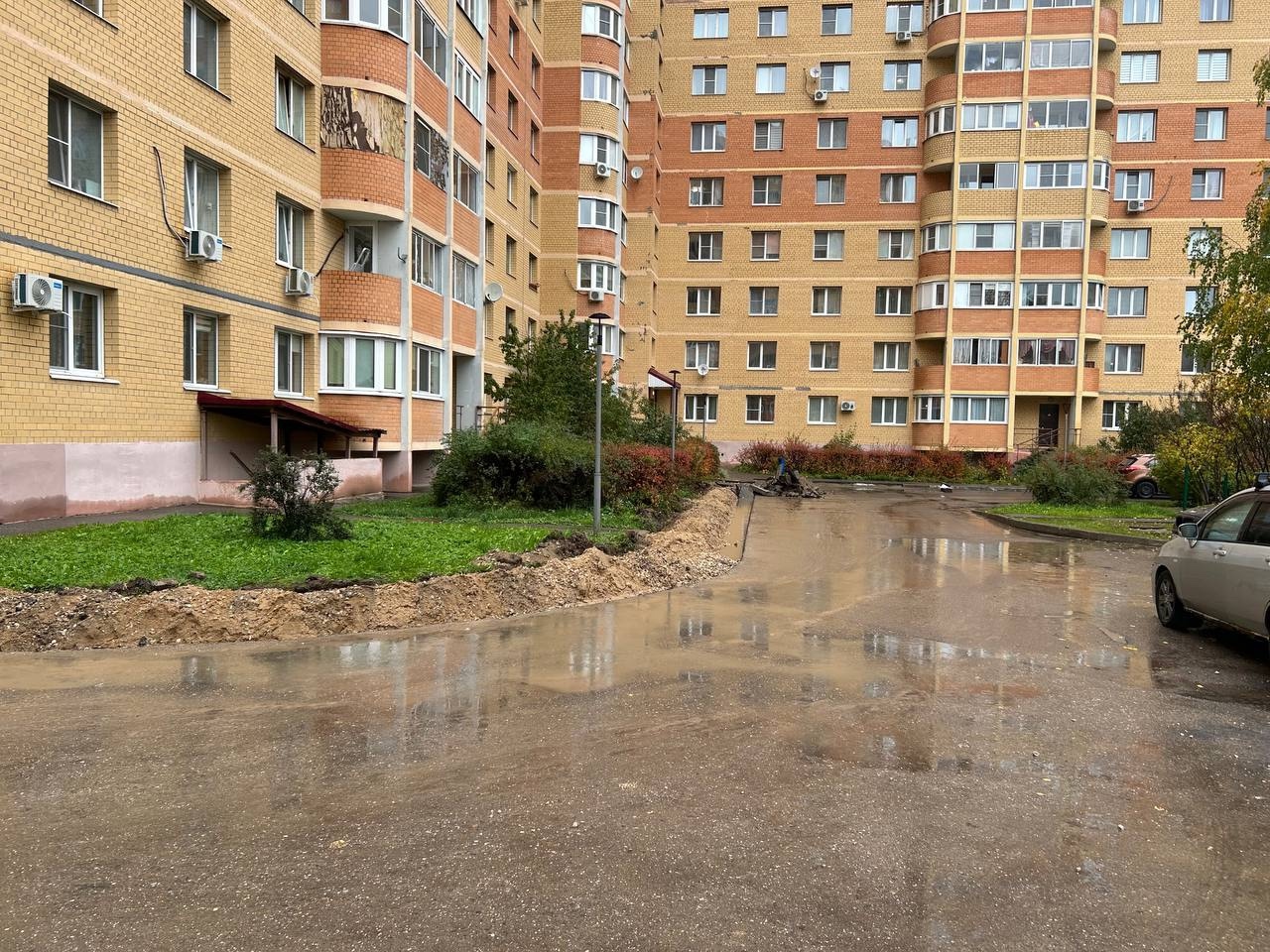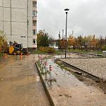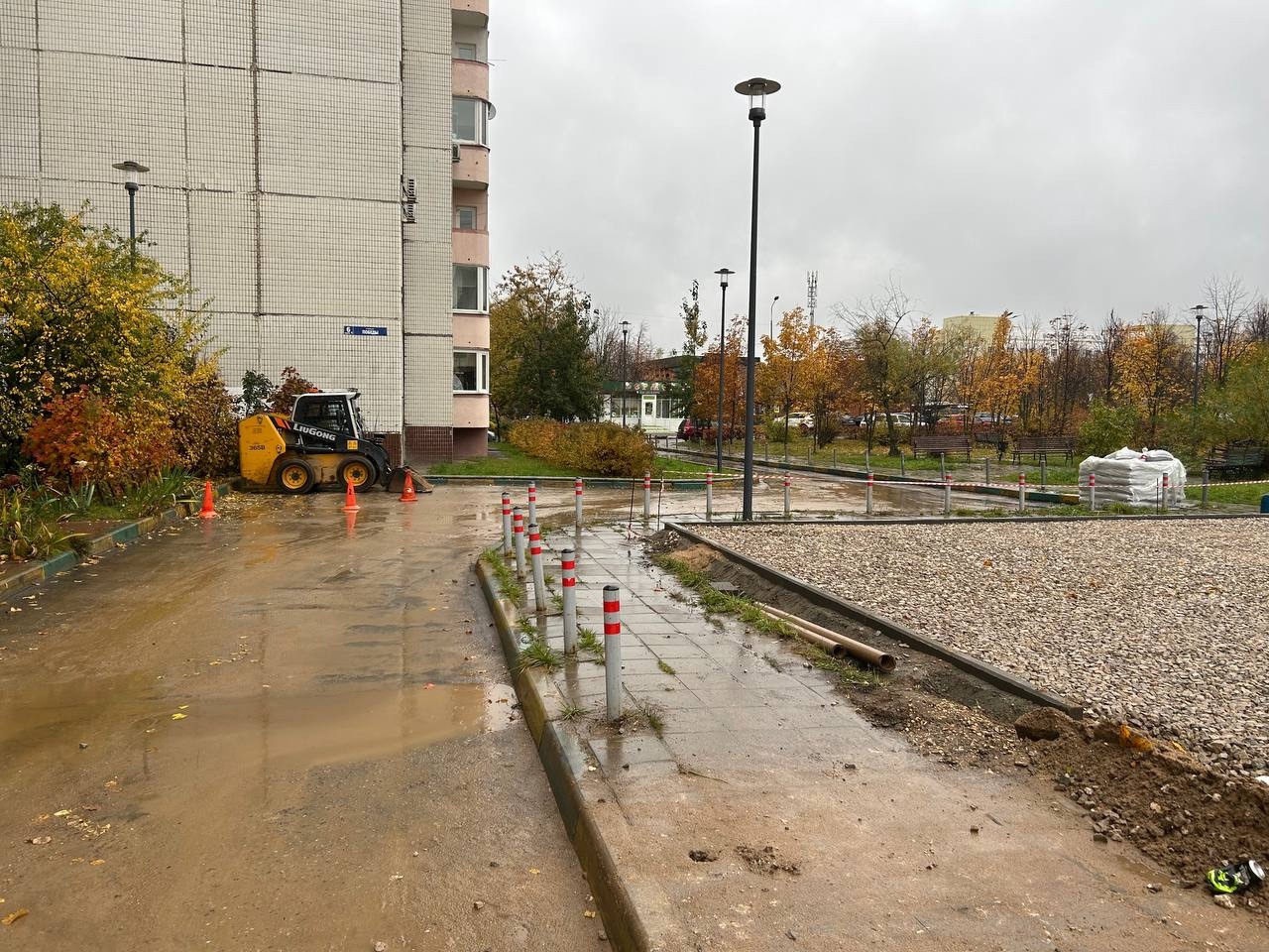 - На ул. Победы, д. 6к2 проводятся работы по модернизации детской игровой площадки. Идут работы по строительству основания под малые архитектурные формы.