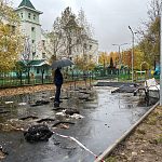- Также ведутся работы по модернизации спортивной площадки по адресу: ул. Строителей, д. 4. Проходят работы по установки элементов.