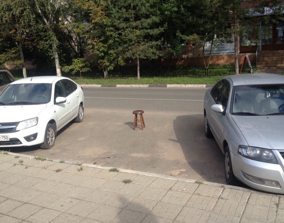 Кто-то захватывал места запорными конструкциями, кто-то «бронировал» места табуреткой, а некоторые отчаявшись найти место идут на риск быть эвакуированным оставив машину в неположенном месте.