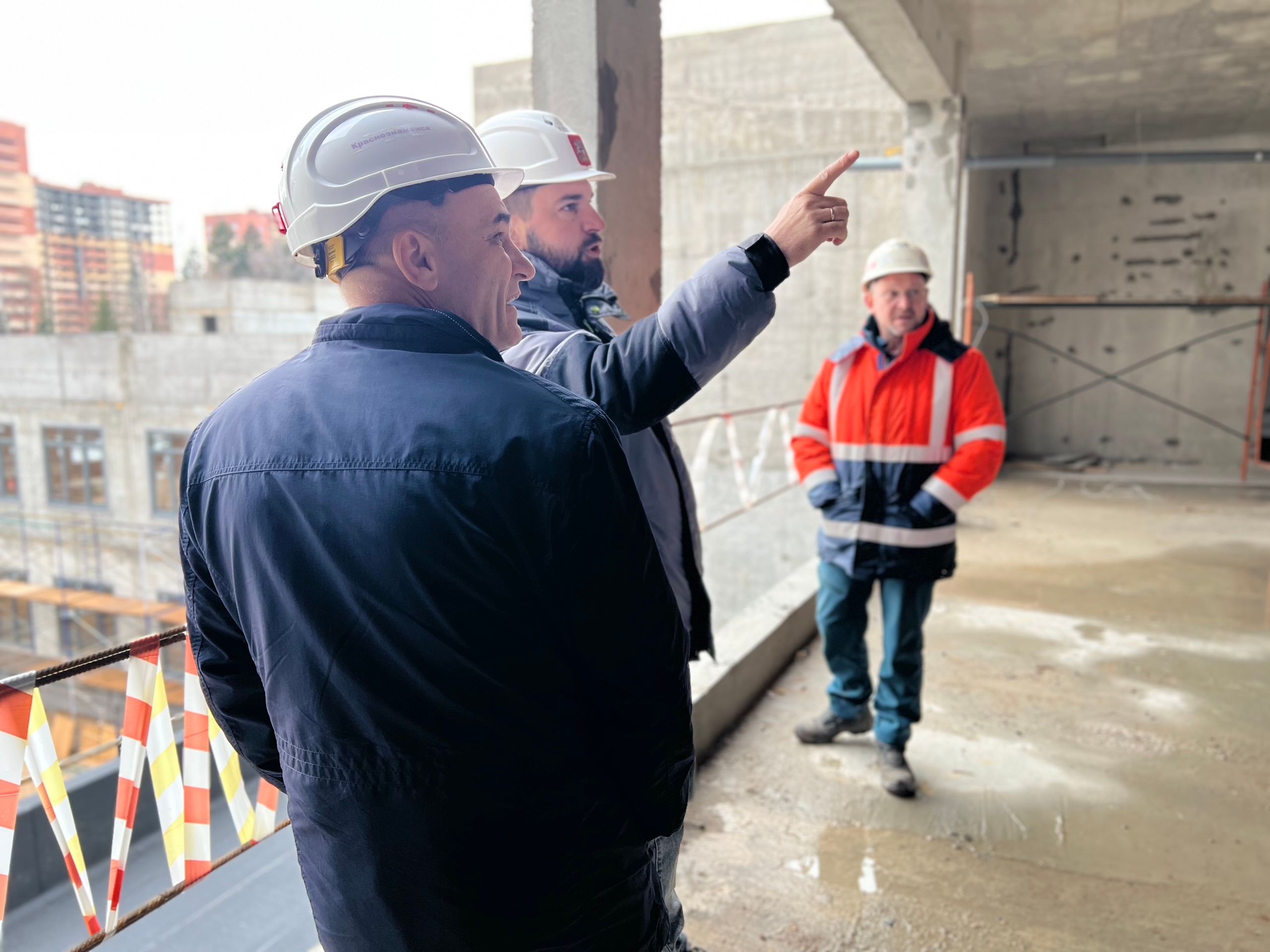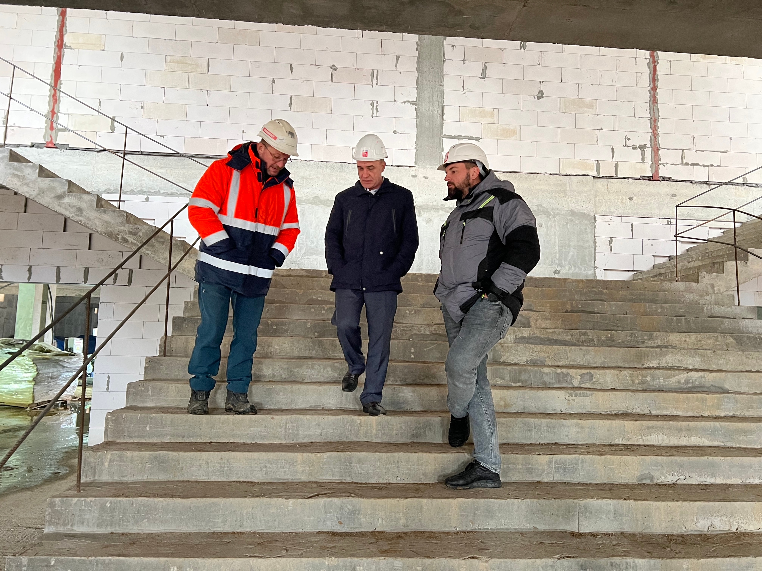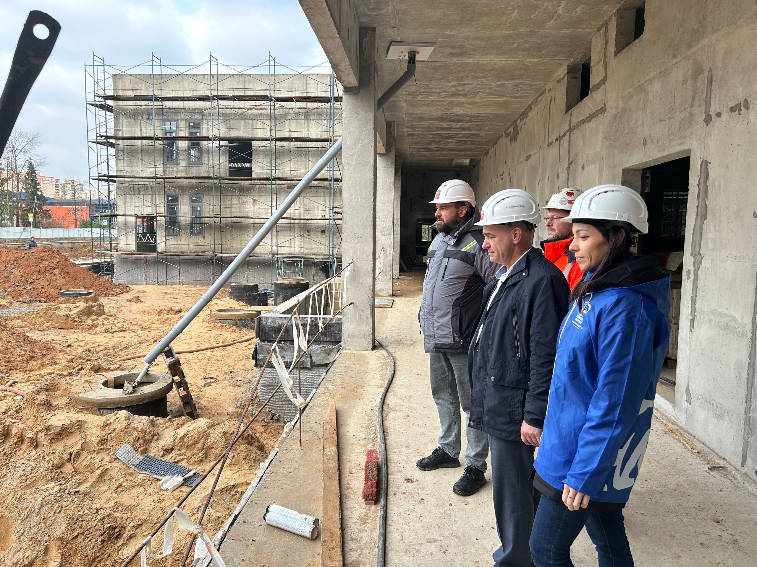 Владимир Пирогов совместно с исполнительным секретарем Еленой Белоусовой проверили ход строительства образовательного центра на ул. Связистов