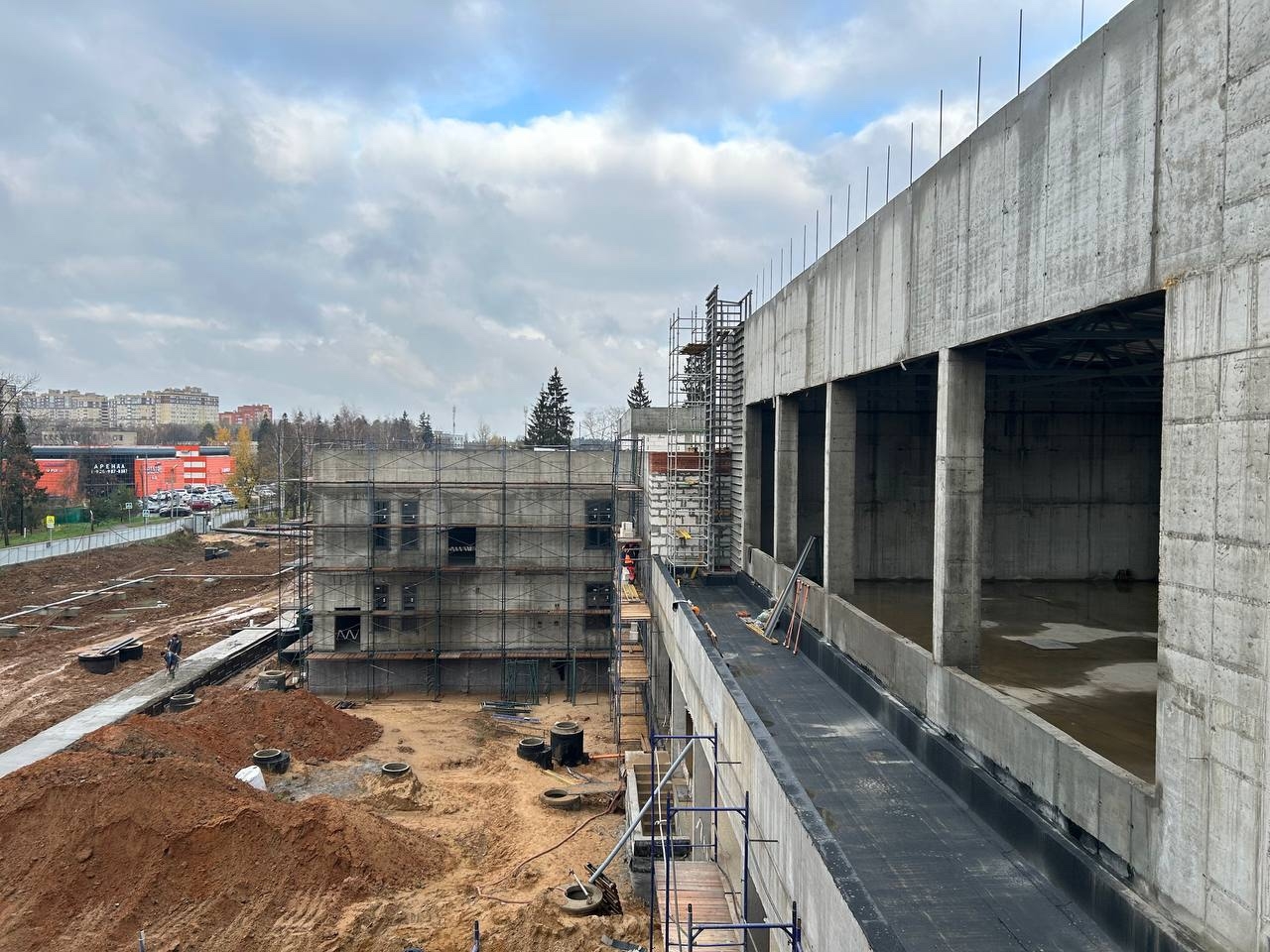 На площадке строительства образовательного центра активно продолжаются работы по: