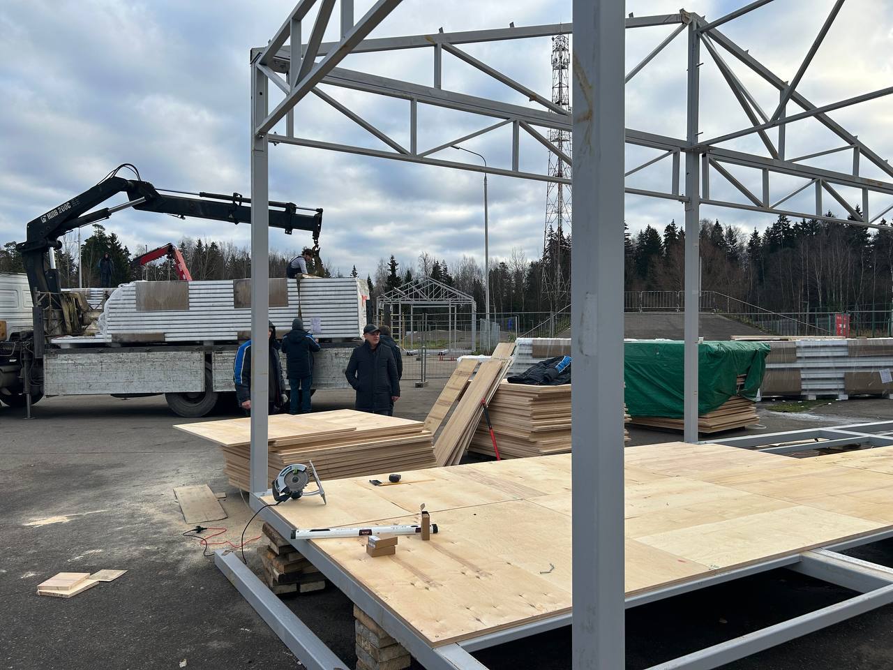 На территории Городского парка проводятся работы по монтажу элементов для будущего сезонного катка. На текущий момент установлен каркас пункта проката и раздевалки, ведутся работы по укладке напольного покрытия. Работы проходят в штатном режиме, согласно графику выполнения работ.