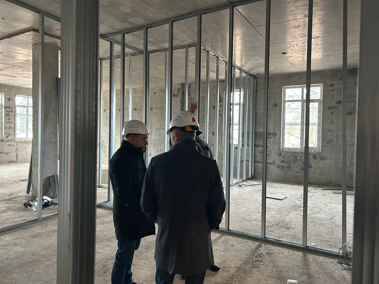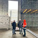 Посетил строительство образовательного центра, включающего школу на 550 мест и детский сад на 220 мест, на ул. Связистов.