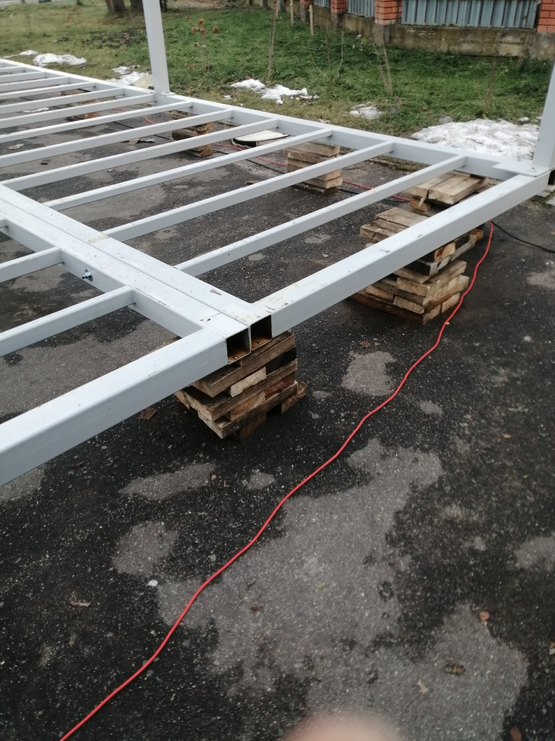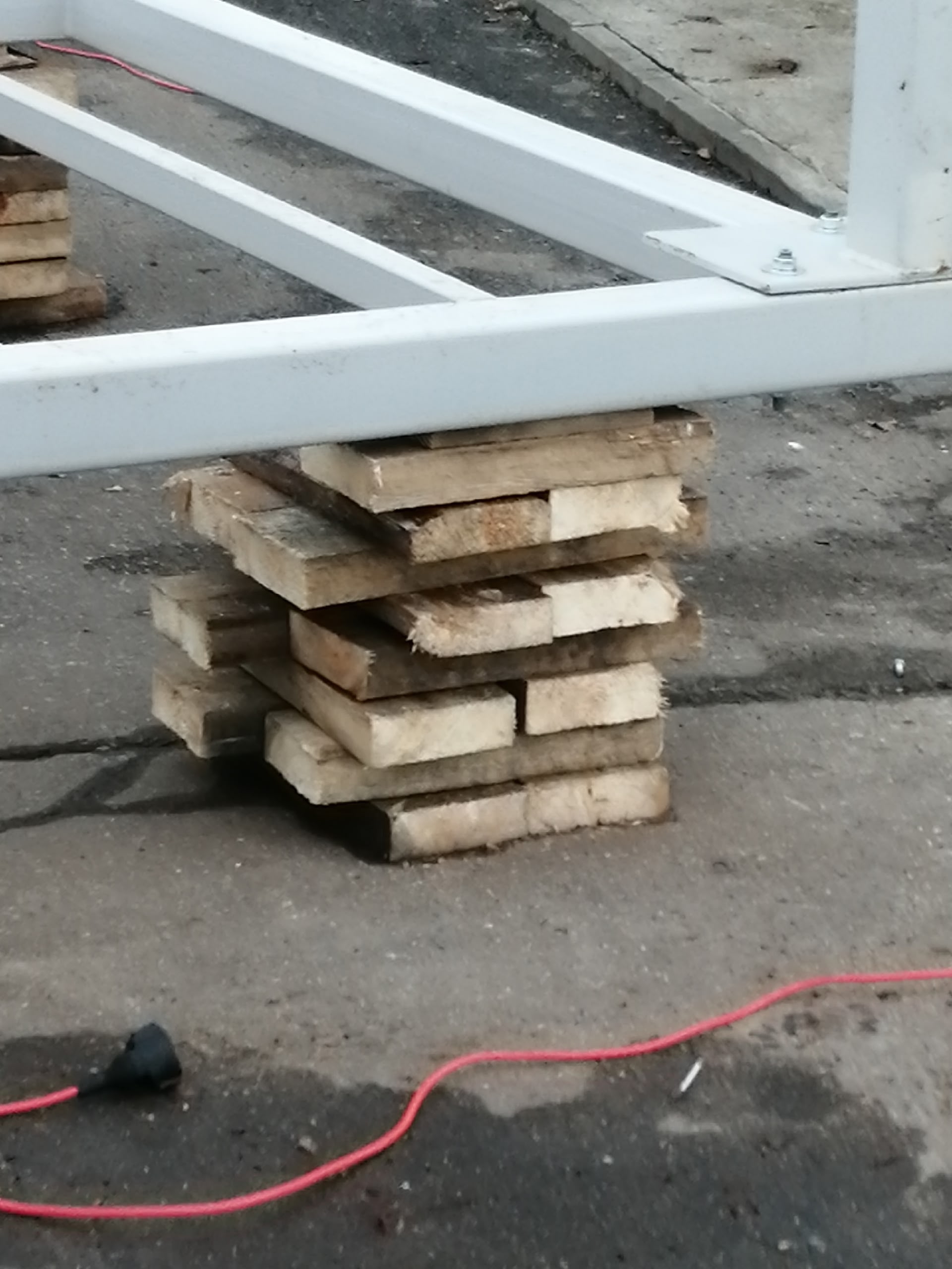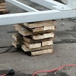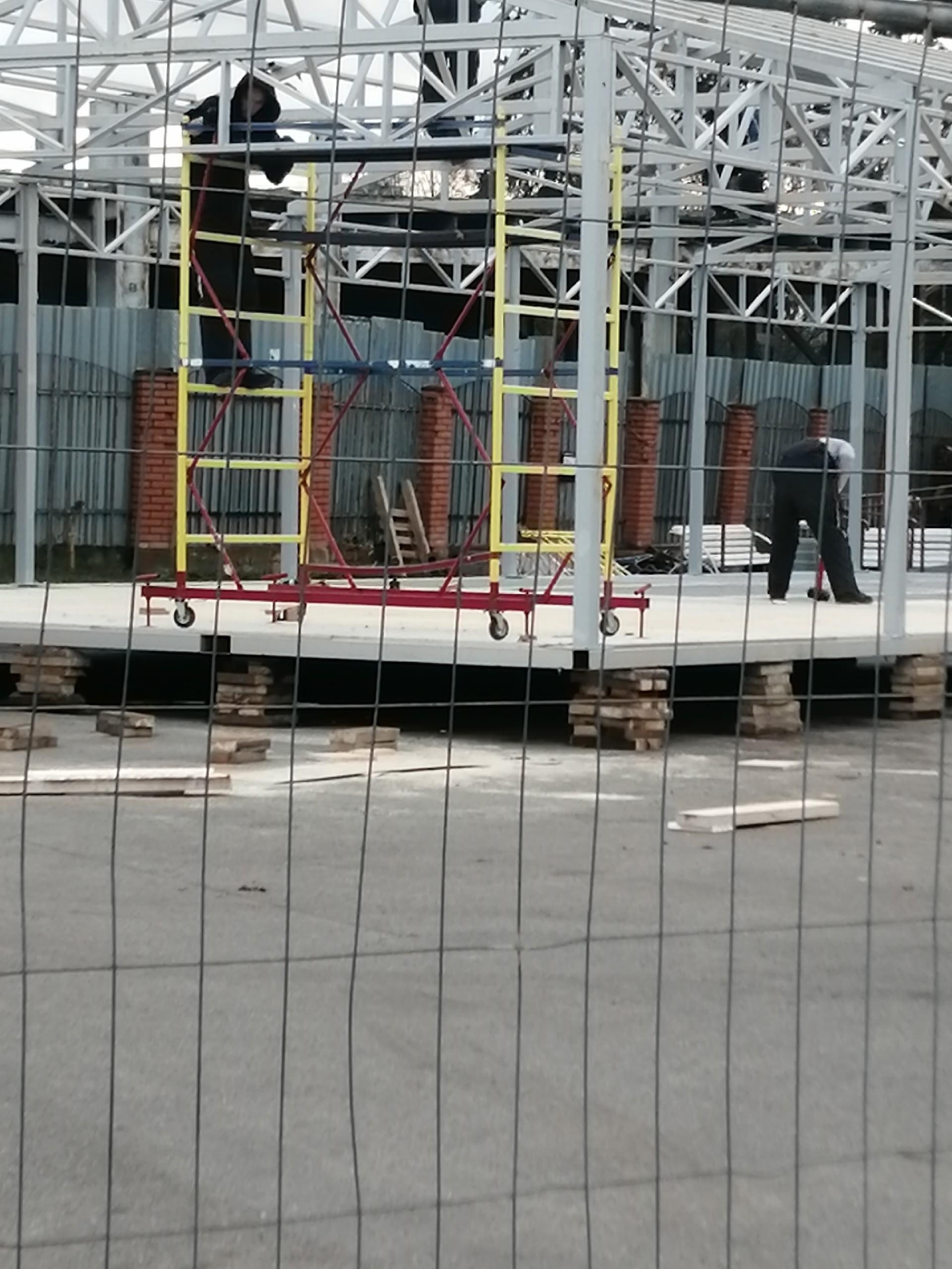 В Городском парке установка металлической конструкции производится на деревянные дощечки. Этот фундамент так и планируют оставить в дальнейшем? Сомневаюсь, что по технике безопасности — это безопасная конструкция.