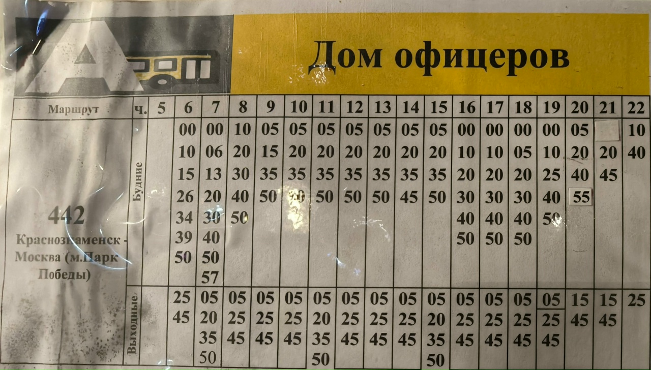 Расписание 442-го автобуса на остановках полностью не соответствует тому, что на сайте Мострансавто