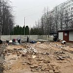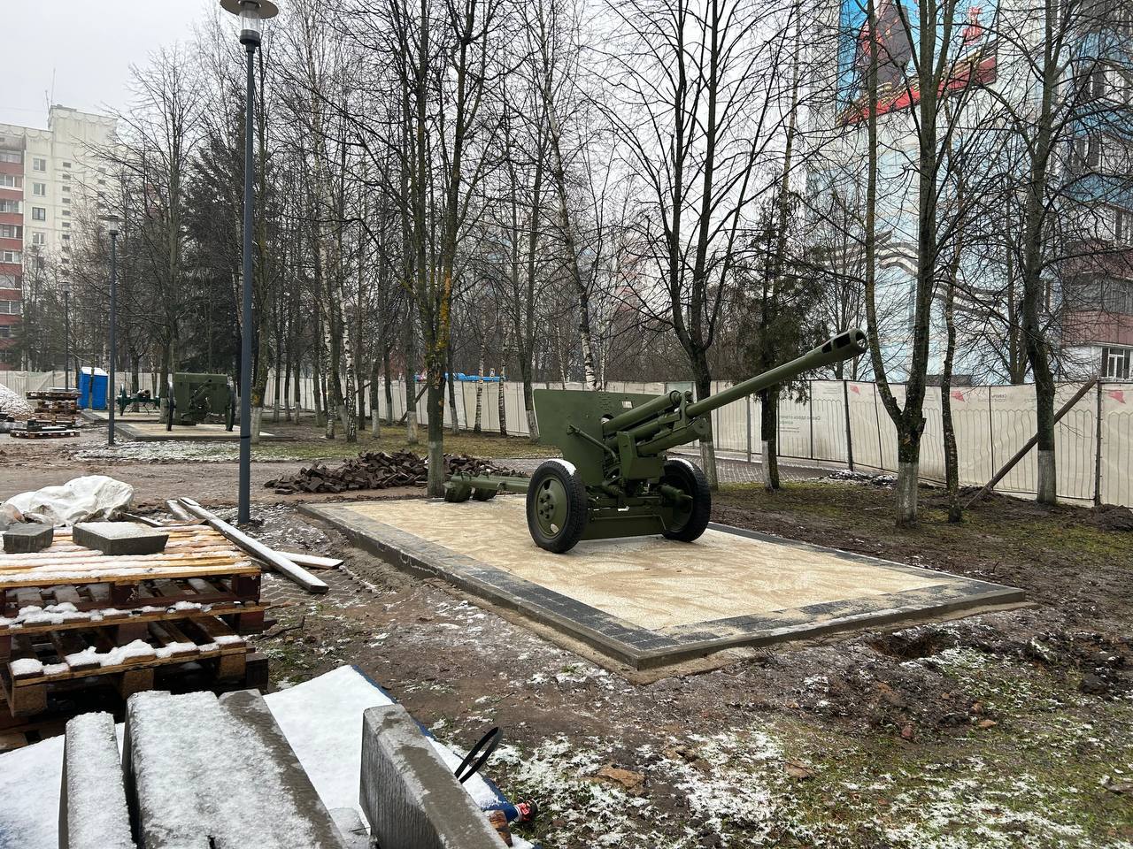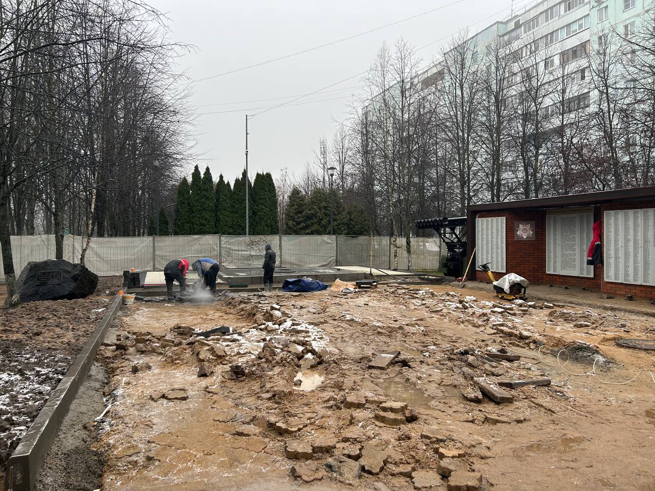 На территории Сквера Победы проходят работы по обустройству общественной территории: в штатном режиме проводится демонтаж старого плиточного покрытия и модернизация основания под элементы эпохи Второй мировой войны.