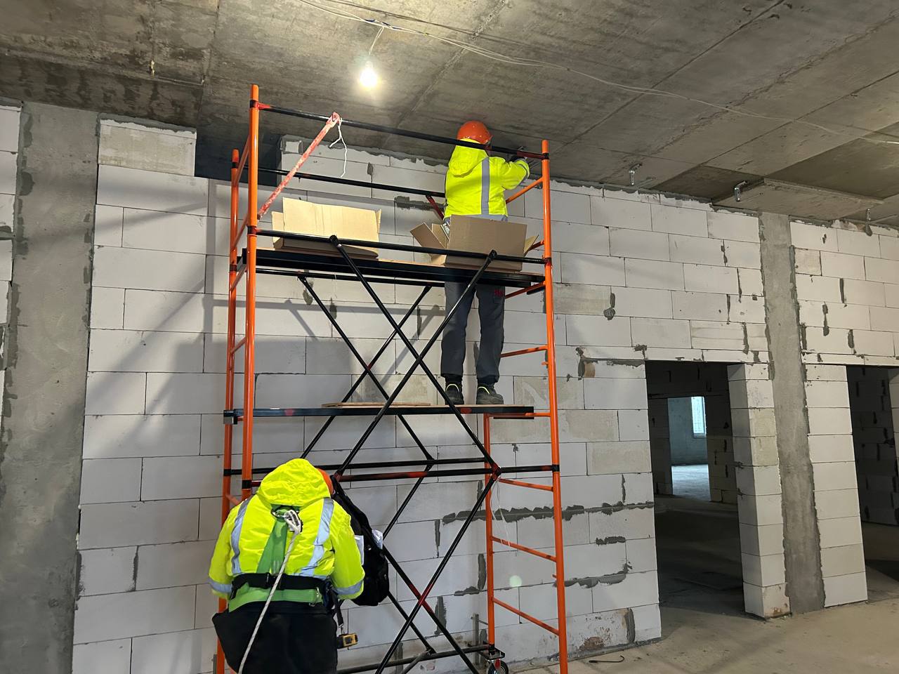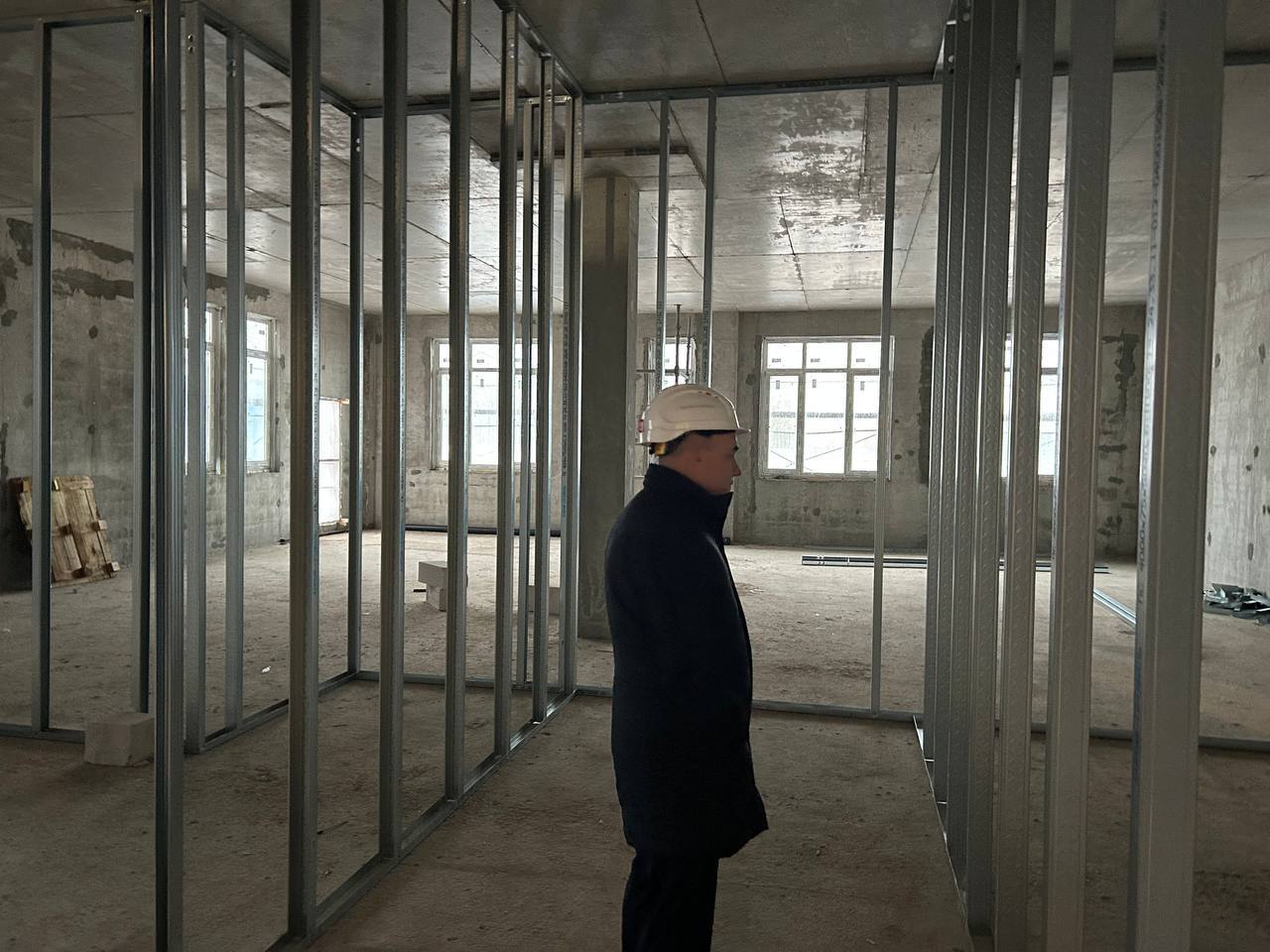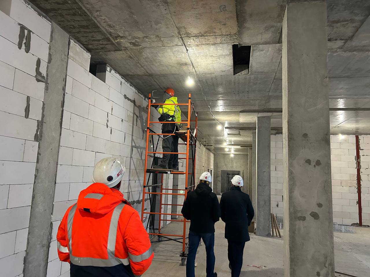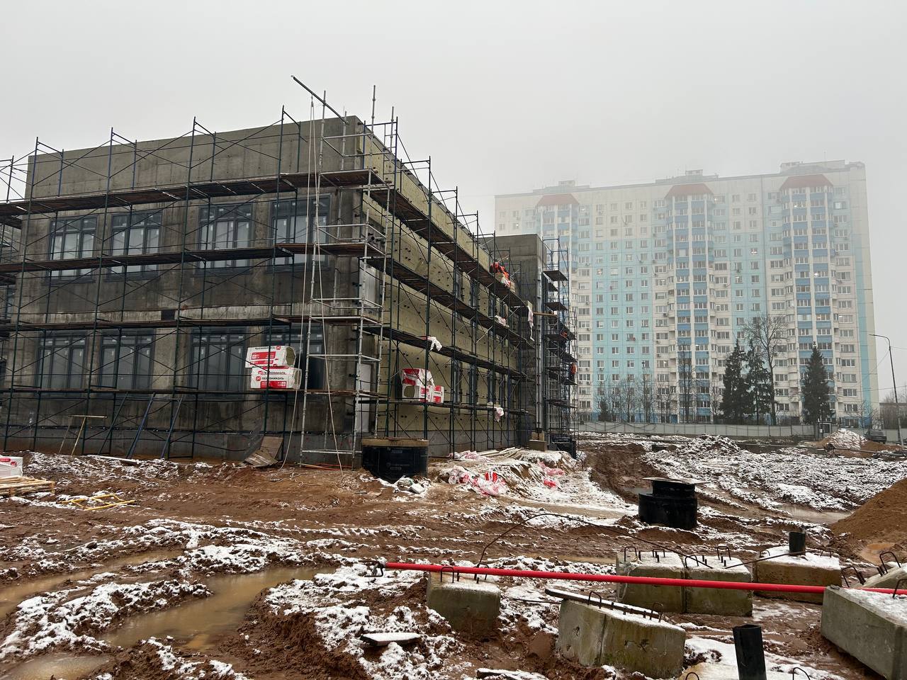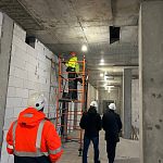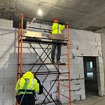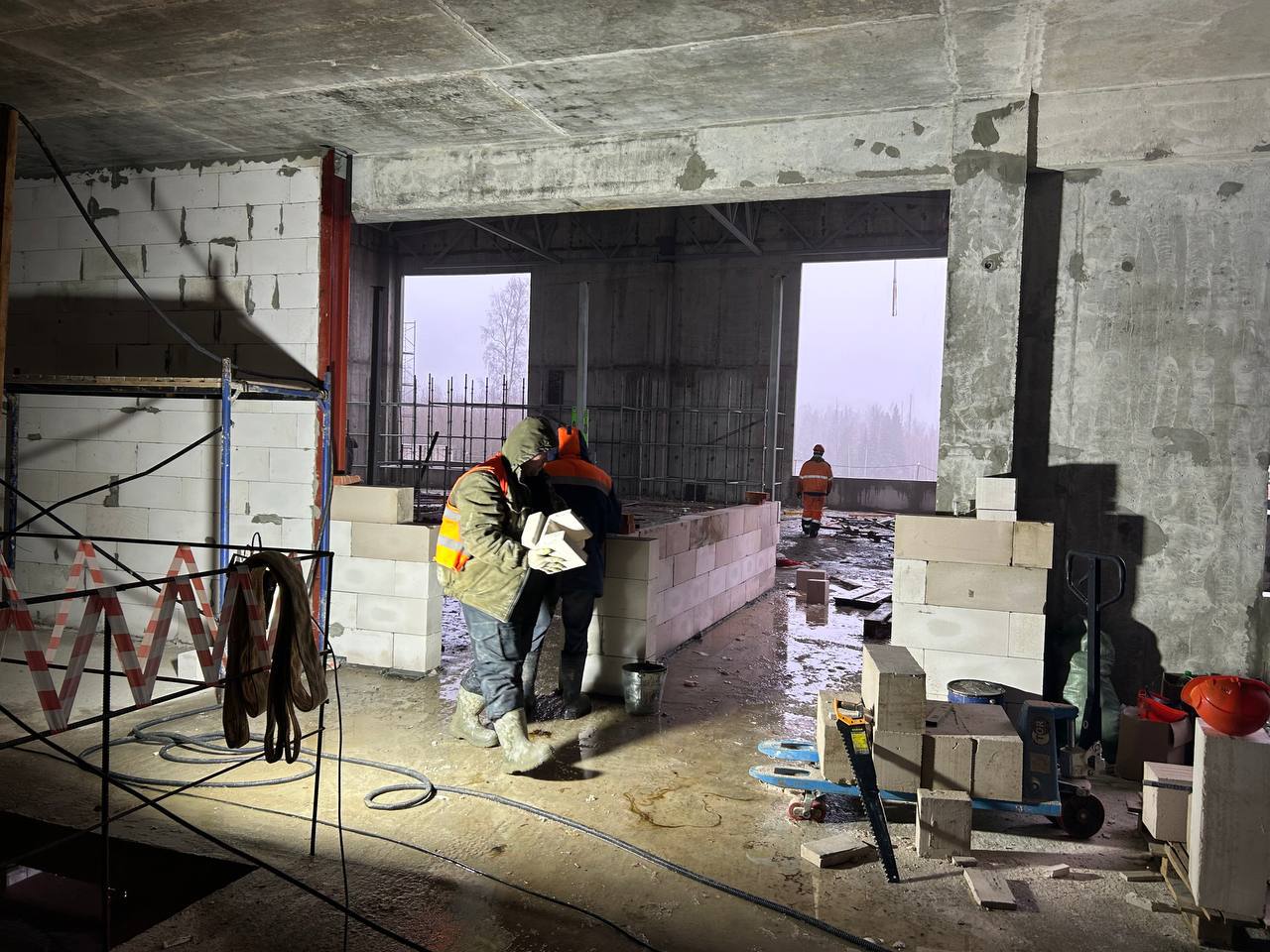 Посетил строительство образовательного центра на ул. Связистов. На площадке задействовано 66 рабочих и 4 единицы техники. Идут работы по: