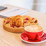 В утреннем меню можно найти: скрэмбл с лососем, сырники, различные сэндвичи, тосты и круассаны.