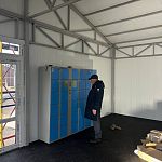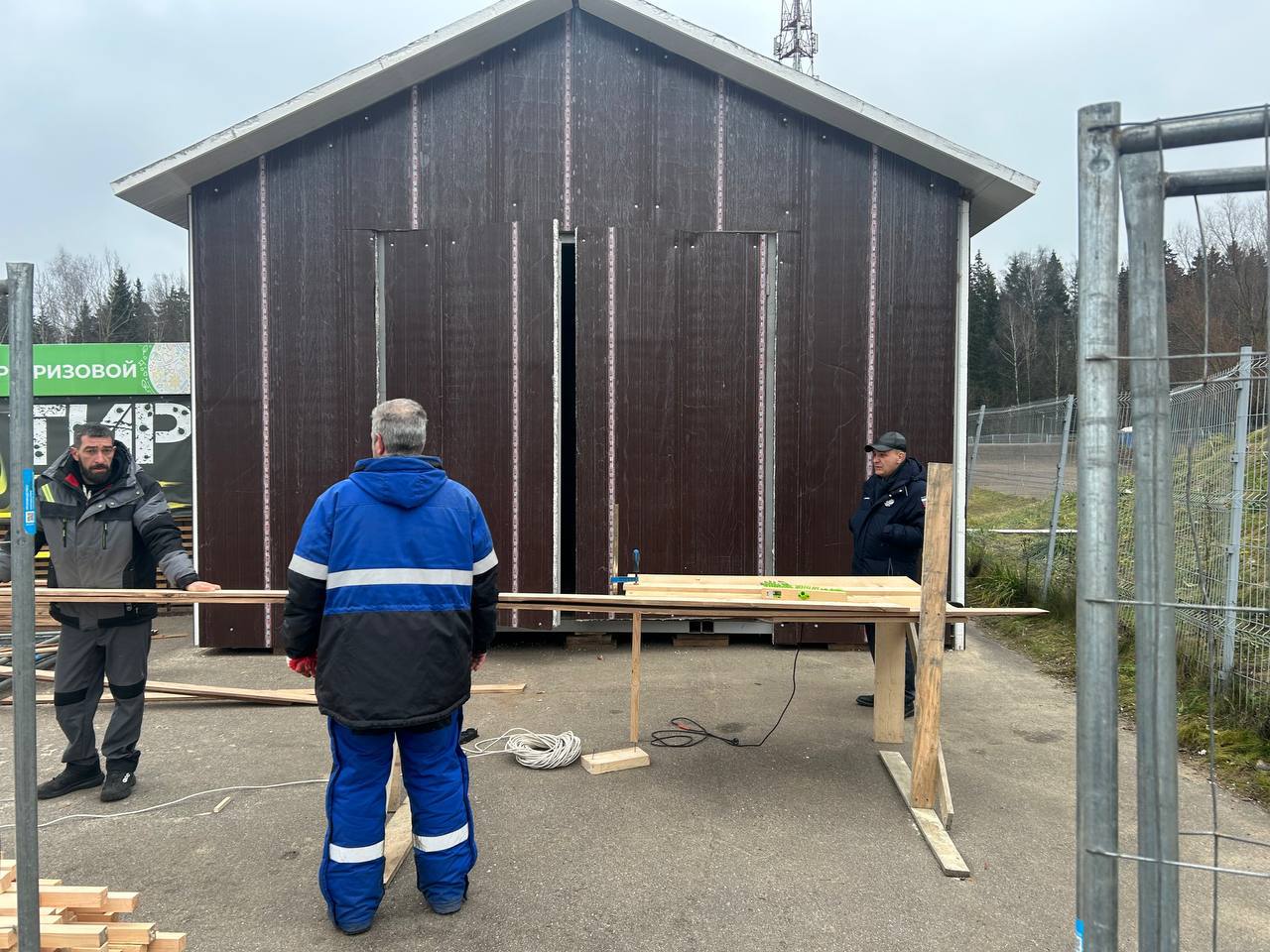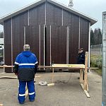 В Городском парке продолжаются работы по обустройству сезонного катка, в настоящее время проводятся работы по обшивке помещения по прокату коньков.
