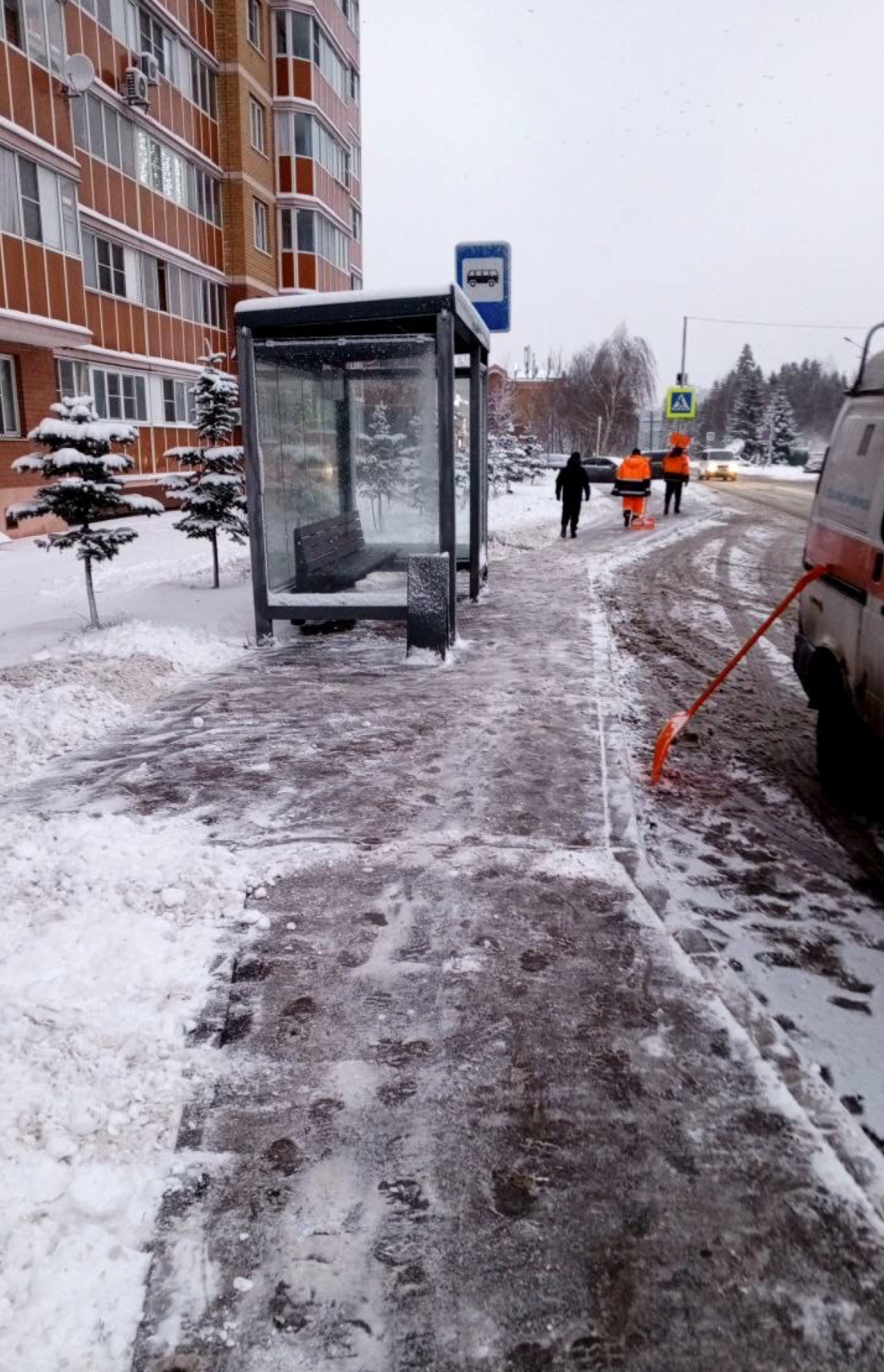 • Обработка противогололёдными материалами тротуаров, пешеходных переходов и остановок общественного транспорта;