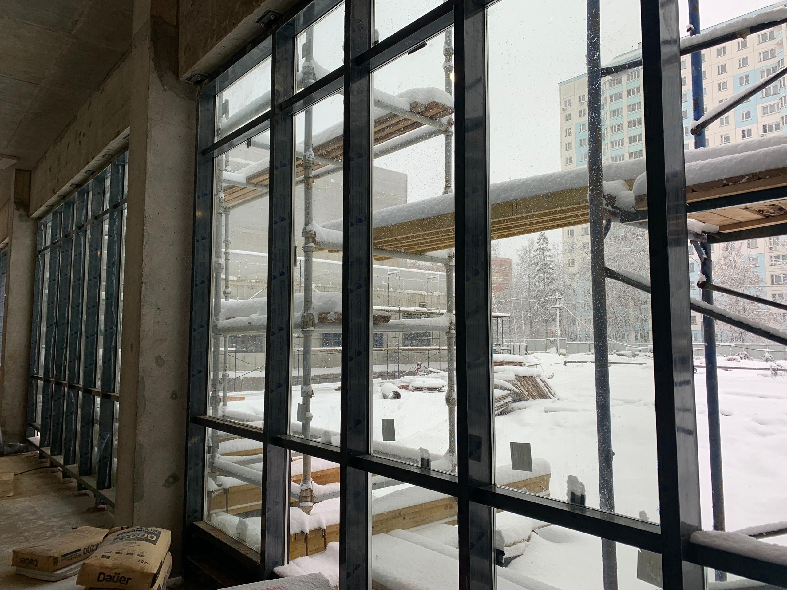 - устройство витражных конструкций, устройство примыканий с утеплением, остекление;