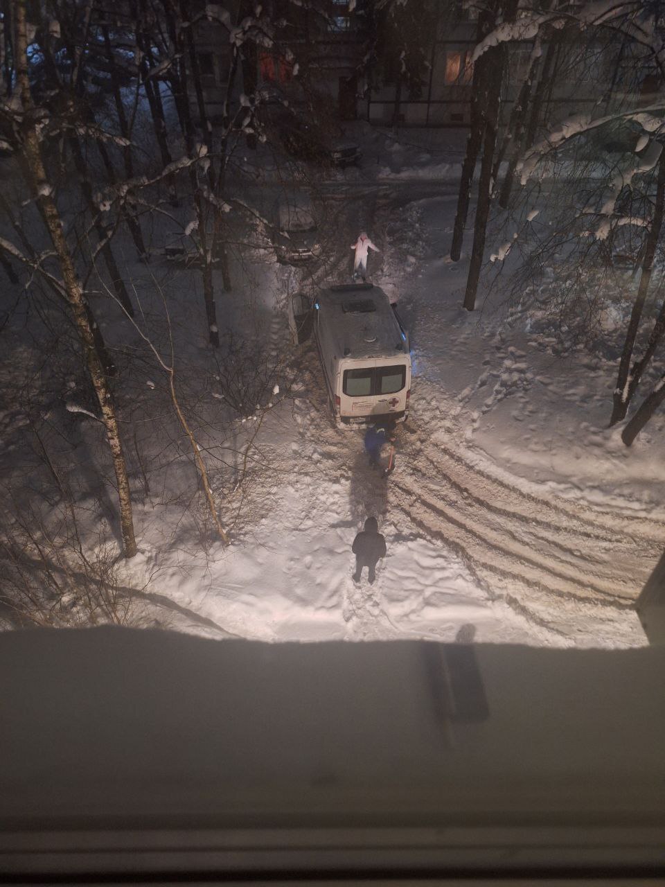 Машина скорой помощи не смогла проехать, застряла из-за нечищеной дороги