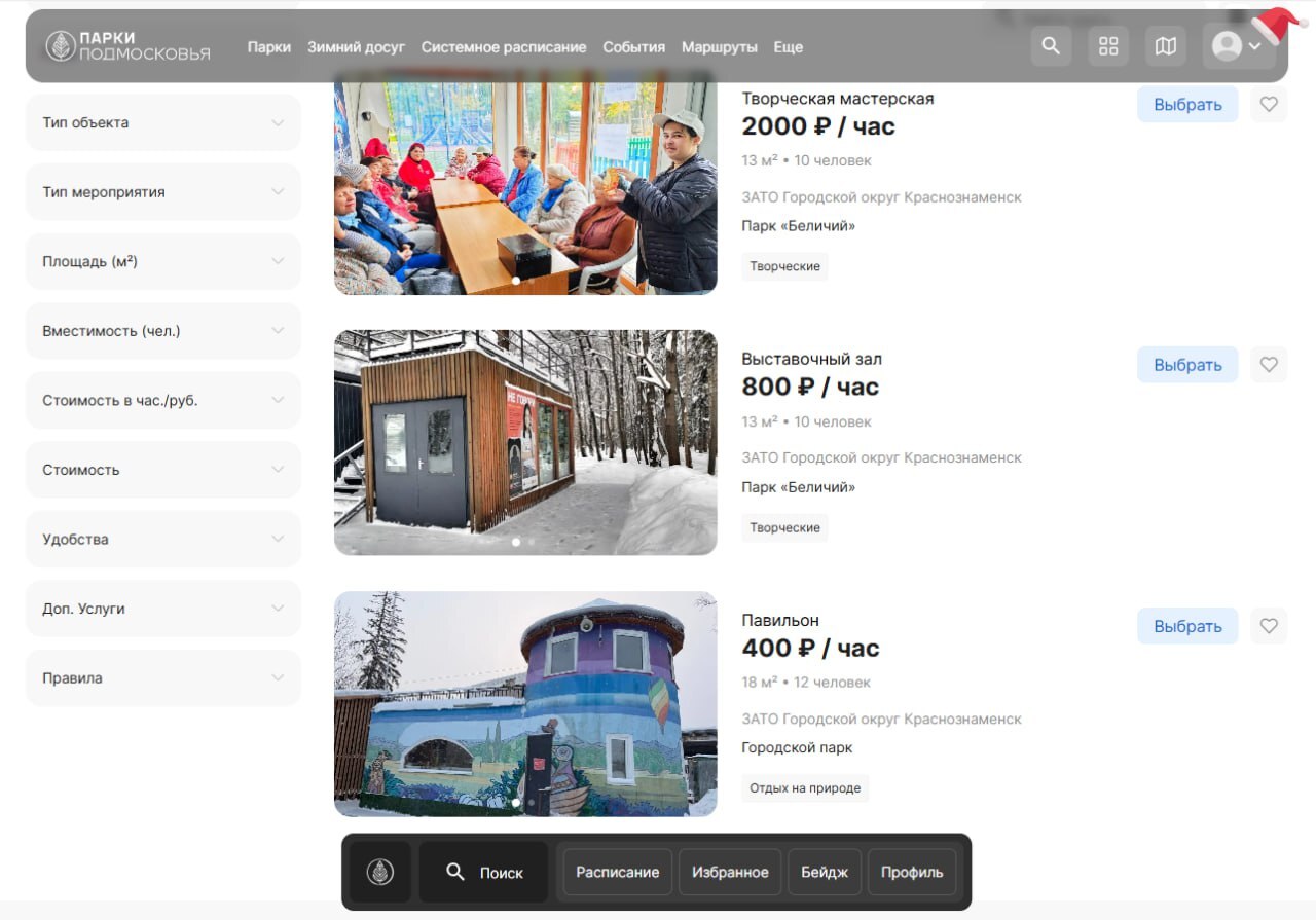 На сайте parki.mosreg.ru появилась возможность бронирования аренды объектов инфраструктуры парков Подмосковья на платной основе.