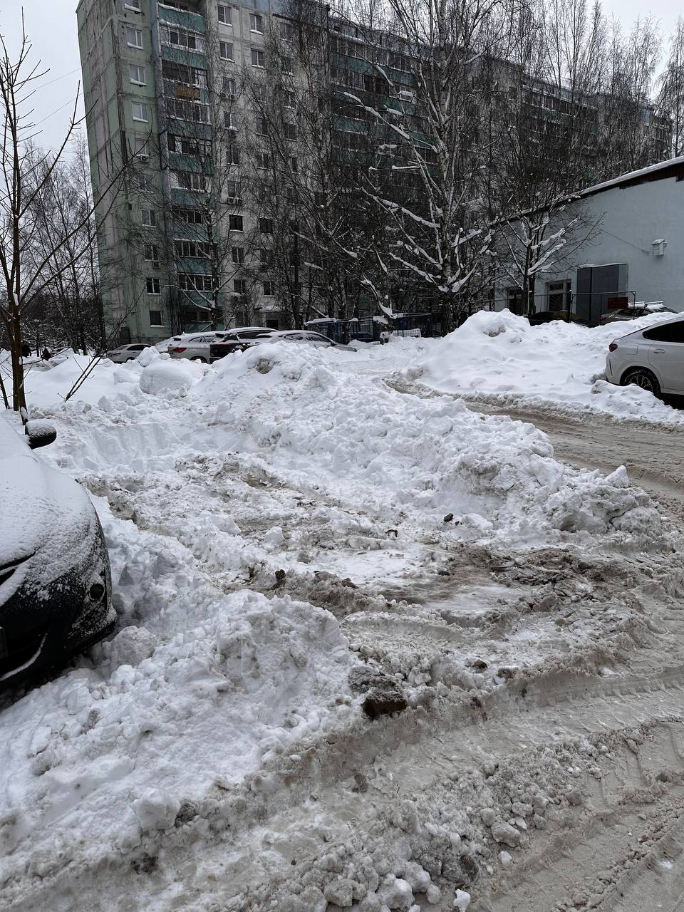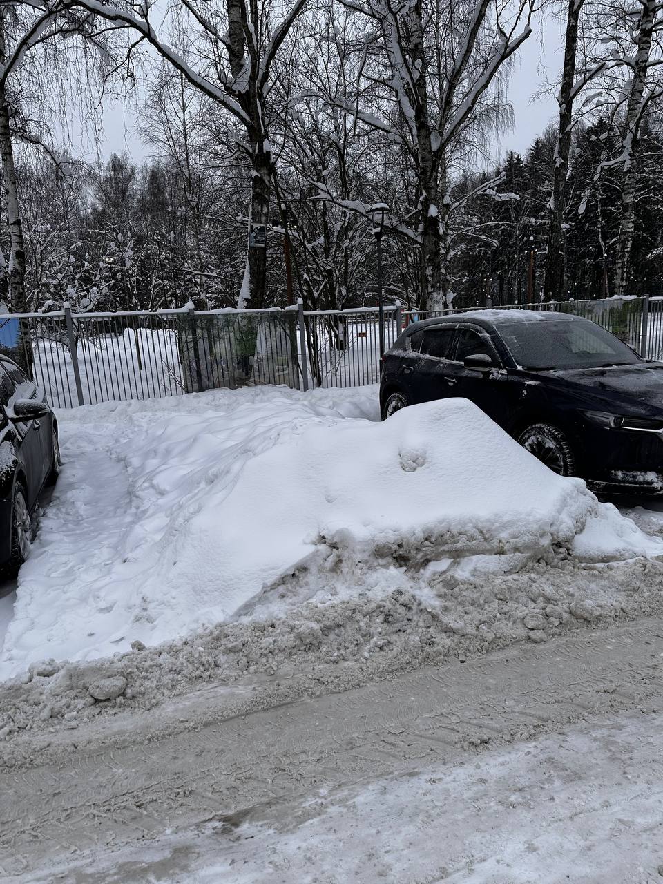 По нормативам в течении 5-ти дней после снегопада , снег должен был вывезен, стоянка возле Беличьего парка.....