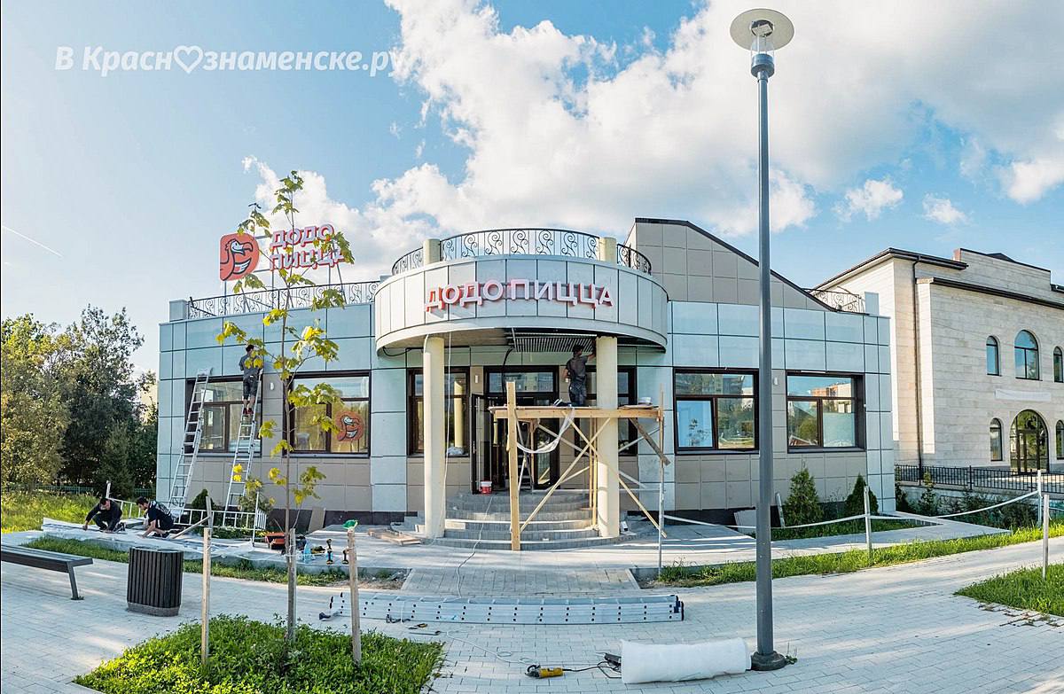 Возле городского озера расположены три здания: два из них активно функционируют — одно занимает Додо Пицца, другое — уютное кафе.