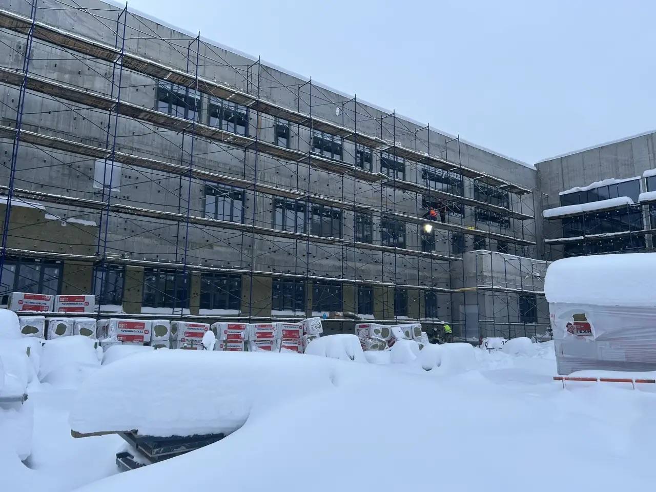 - Сборка каркасов для будущих стен в школе;