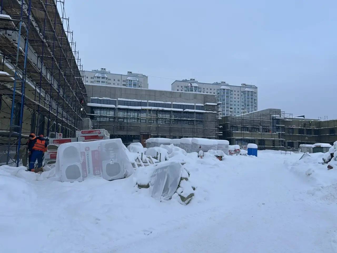 На строительной площадке задействовано 94 рабочих и 2 единицы техники.