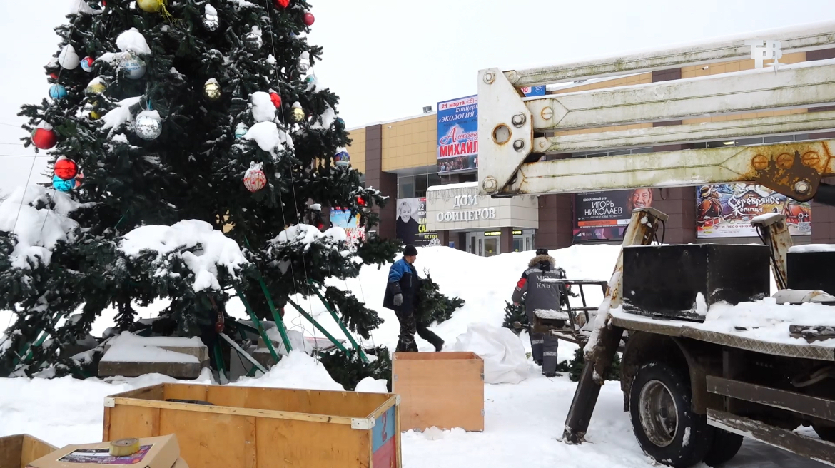 В Краснознаменске продолжаются работы по демонтажу новогоднего оформления