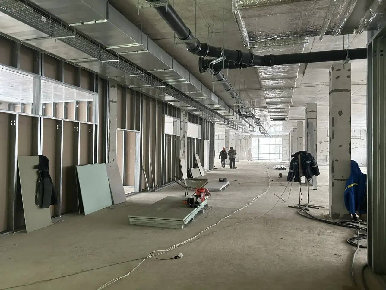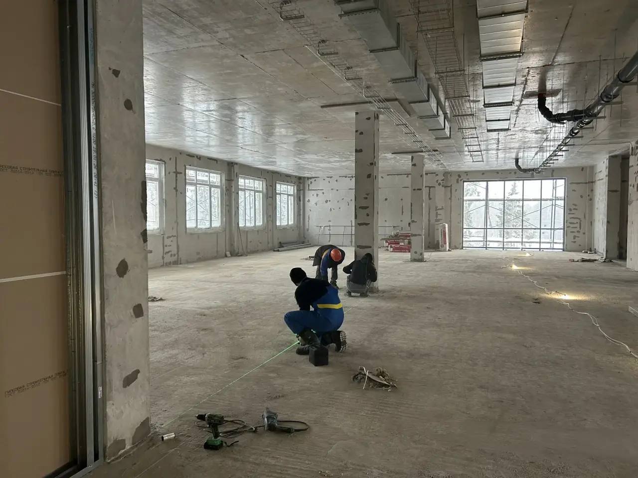- Устройству фасада школы и детского сада; перегородок, каркасов перегородок, витражных конструкций в школе; канализации;