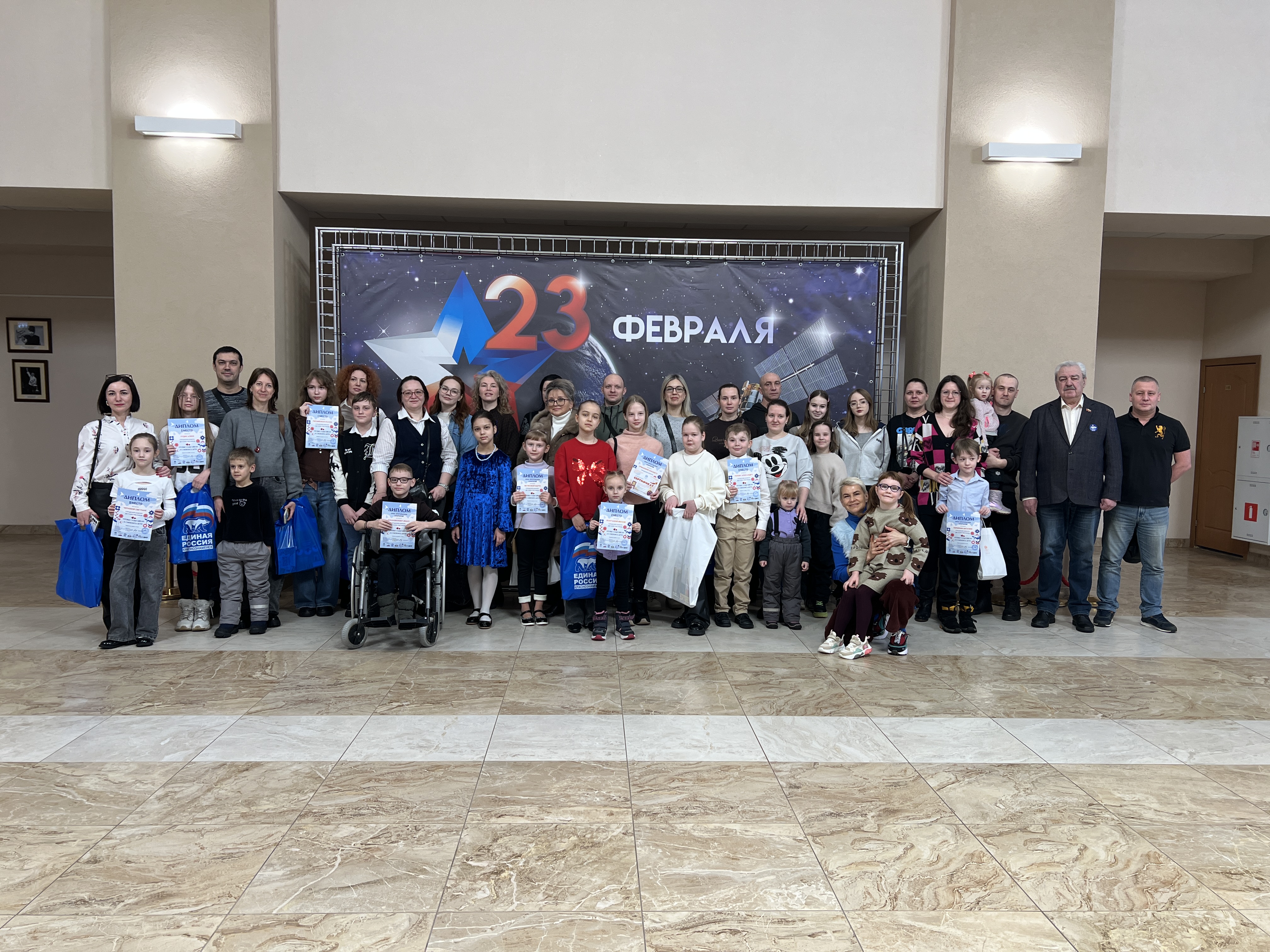 22 февраля в МБУКИ «Дом офицеров» состоялась церемония награждения победителей художественного конкурса. Депутат фракции Единая Россия, председатель городского Совета депутатов Александр Мостковой, исполнительный секретарь Елена Белоусова, член общественной организации «Росток добра» Мария Нестерова, а также руководитель художественной мастерской Анастасия Забродько вручили победителям дипломы и памятные призы.