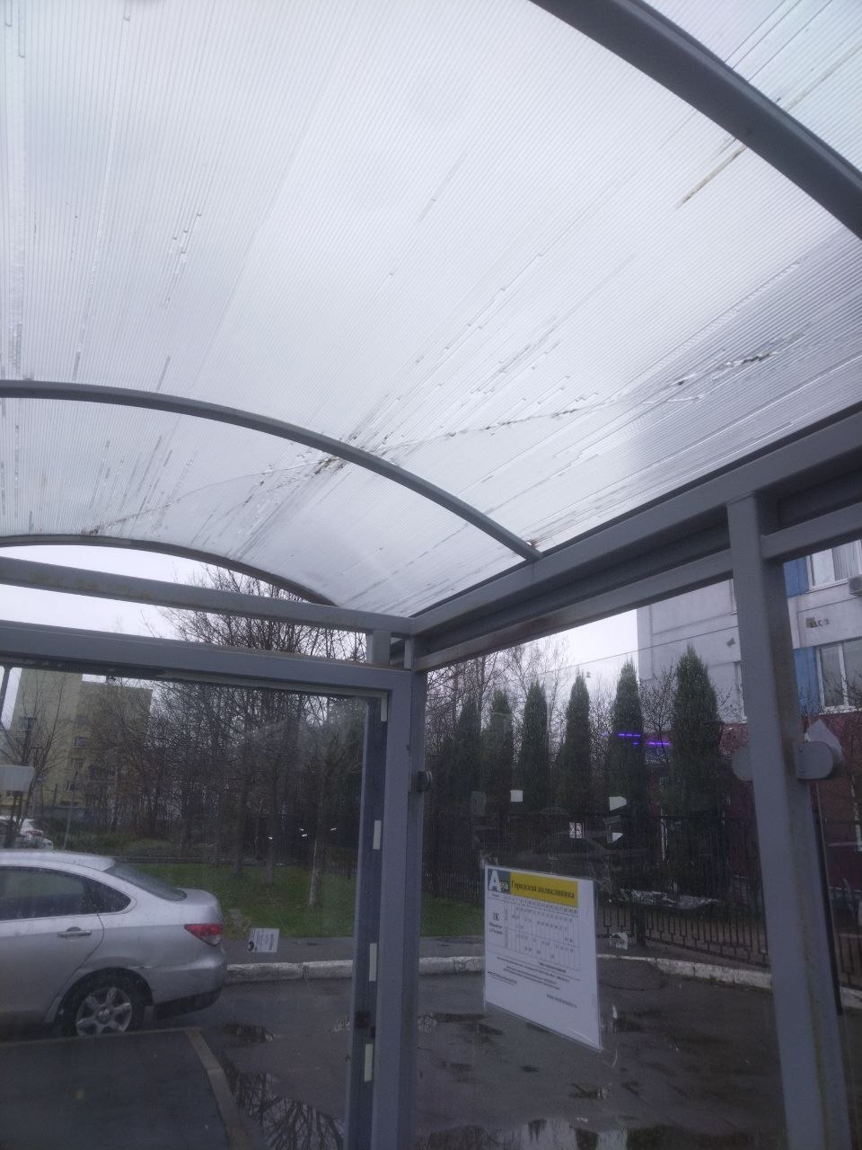 На остановке городской поликлиники оторвалась крыша