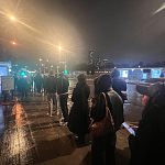 Фото №1- На данном фото, вы можете наблюдать кучку людей слева(«добропорядочные»)тех, кто решил пережидал дождь на остановке/кто подходил туда же, обходя людей справа, которые соблюдали очередь.