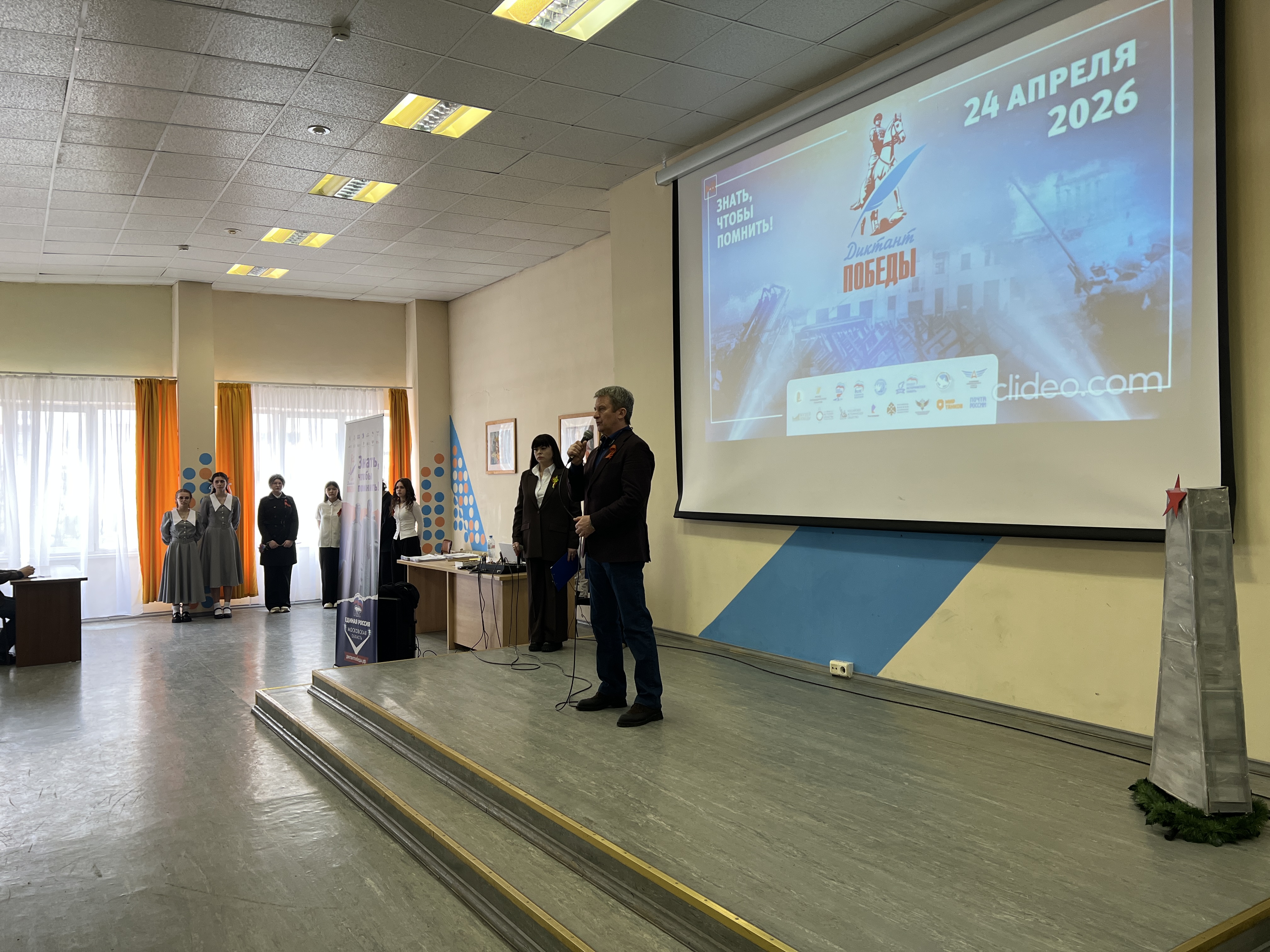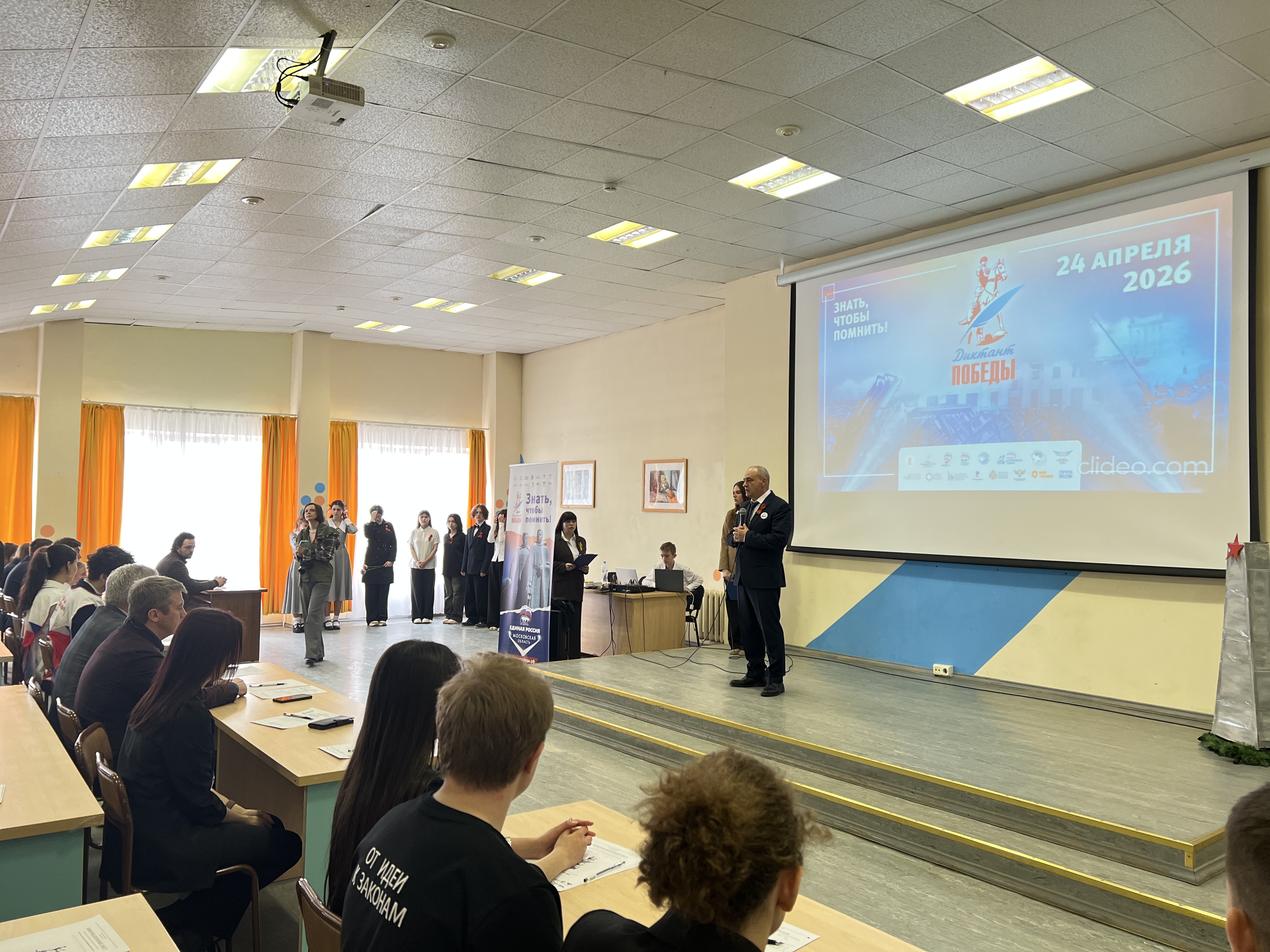 Заместитель председателя Московской областной Думы Олег Рожнов, секретарь местного отделения Единой России Владимир Пирогов, исполнительный секретарь Елена Белоусова совместно с депутатами фракции Единая Россия в городском Совете депутатов, волонтёры Подмосковья, молодогвардейцы и Молодёжный парламент при городском Совете депутатов приняли участие в «Диктанте Победы» в рамках программы Единой России «Успех V единстве поколений» и партийного проекта «Историческая Память».