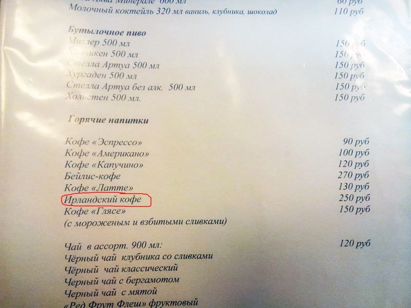 Заказав кофе (Ирландский кофе) обнаружил в нём лошадиную дозу алкоголя.
