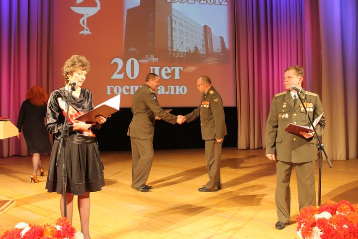 Филиал №4 главного военного клинического госпиталя имени академика Н.Н. Бурденко является одним из ведущих лечебных учреждений вооруженных сил. В госпитале работает высококвалифицированный персонал, что обеспечивает качественное оказание медицинской помощи. В коллективе большой научный потенциал: 3 доктора и 7 кандидатов медицинских наук, 2 Заслуженных врача РФ, 78 врачей высшей и первой квалификационных категорий. Глава городского округа Краснознаменск А.Г. Тришин и Руководитель администрации М.В. Сапунов поздравили персонал госпиталя и поблагодарили за нелегкий благородный труд, за добросовестное отношение к своему делу, за высокий профессионализм и ответственность, за заботу и душевную теплоту, которые сотрудники госпиталя щедро дарят пациентам. С особыми словами благодарности руководители к людям, которых по праву можно назвать отцами-основателями госпиталя. Поздравить военный госпиталь с юбилеем пришли как военные, так и гражданские коллеги по медицине. Много теплых слов было сказано в адрес начальника госпиталя полковника м/с В.А. Сторожилова и его сотрудников. Многие сотрудники были награждены грамотами, благодарностями и ценными подарками за добросовестный труд и в связи с 20-летием Филиала №4 военного госпиталя имени Н.Н. Бурденко. По окончании торжественного собрания его участников ждал концерт, подготовленный творческими коллективами ЦРТДЮ. Пресс-служба Главы городского округа
