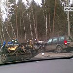 Я ехал немного позади. Произошло это сразу после заправки на 28 км Минского шоссе, а не напротив ТЦ Город.