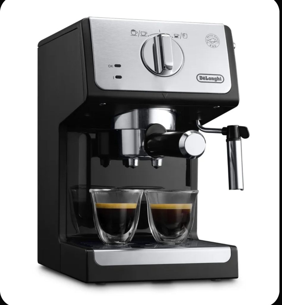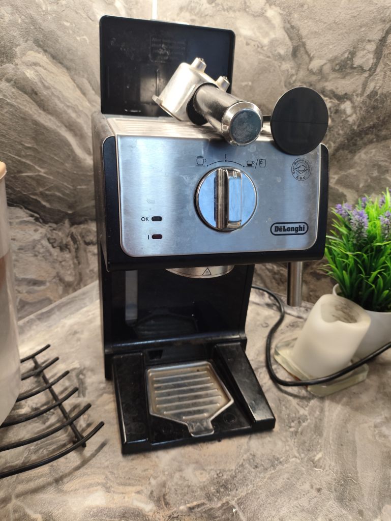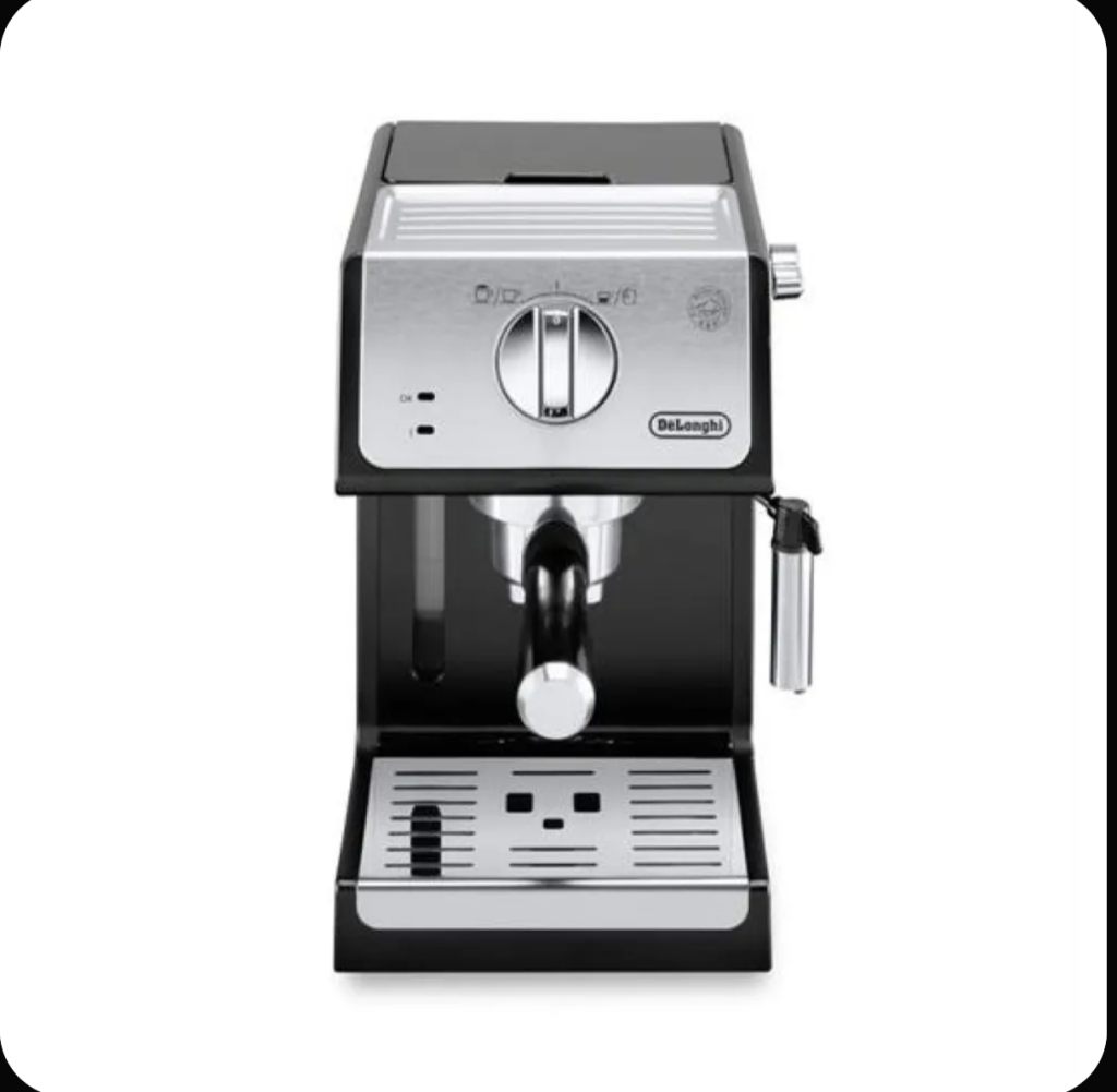 Кофеварка DeLonghi ECP 33.21.BK. Она имеет профессиональный холдер фильтров и фильтры для приготовления 1, 2 чашек, а также фильтр, который понравится любителям использовать чалды. Кофеварка очень стильная, ее корпус пластиковый. Эта модель будет отлично смотреться на любой кухне. Она выключается автоматически, что очень удобно. Еще одно ее преимущество – платформа для подогрева чашек. Для чего она нужна? Опытные бариста уверяют, что кофе нужно наливать в теплую посуду, поэтому не забудьте водрузить ее на несколько минут на платформу для подогрева. Состояние идеальное. Пользовались меньше года, меняем, тк нужен автоматический капучинатор.