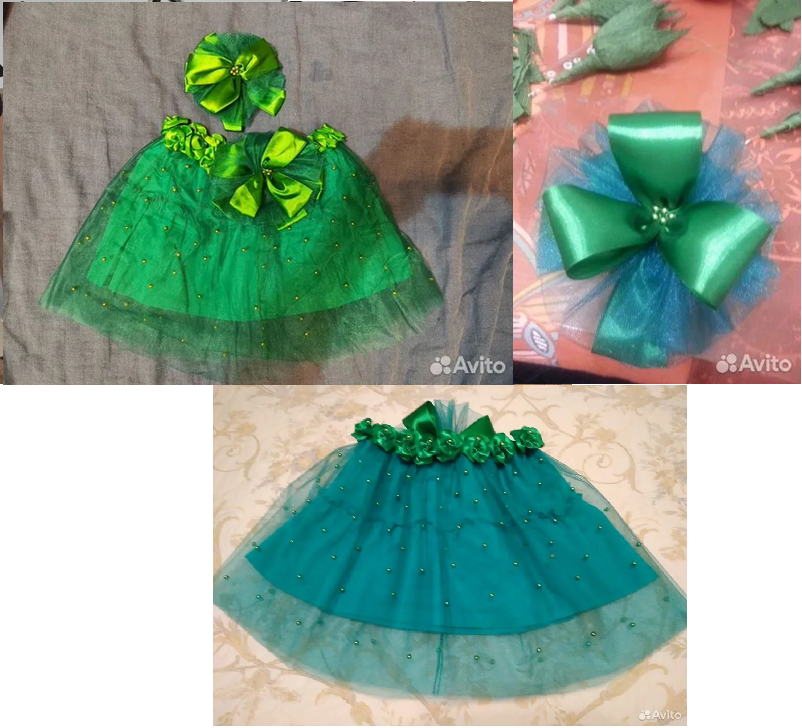 Новогодний костюм "Елочка" в отличном состоянии. Комплект включает верхнюю часть с бантом и юбку из зелёной ткани с блестками. Юбка украшена бусинами. Размер 98 см (3 года). Костюм шили на заказ, одевали один раз.