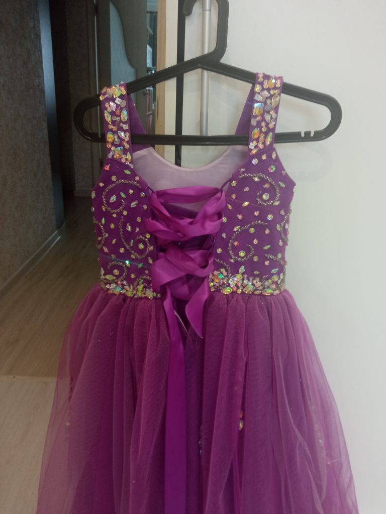 Нарядное платье для выпускного или праздника, цвет сиреневый с блёстками, сзади шнуровка, р 122-128