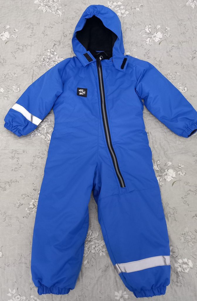 Демисезонный комбинезон из мембраны, утеплитель - шелтер, плотность 150 г/ кв.м; подкладка - хлопок на спинке и животе, вискоза на ножках и ручках. Размер 98. В хорошем состоянии, после одного ребенка