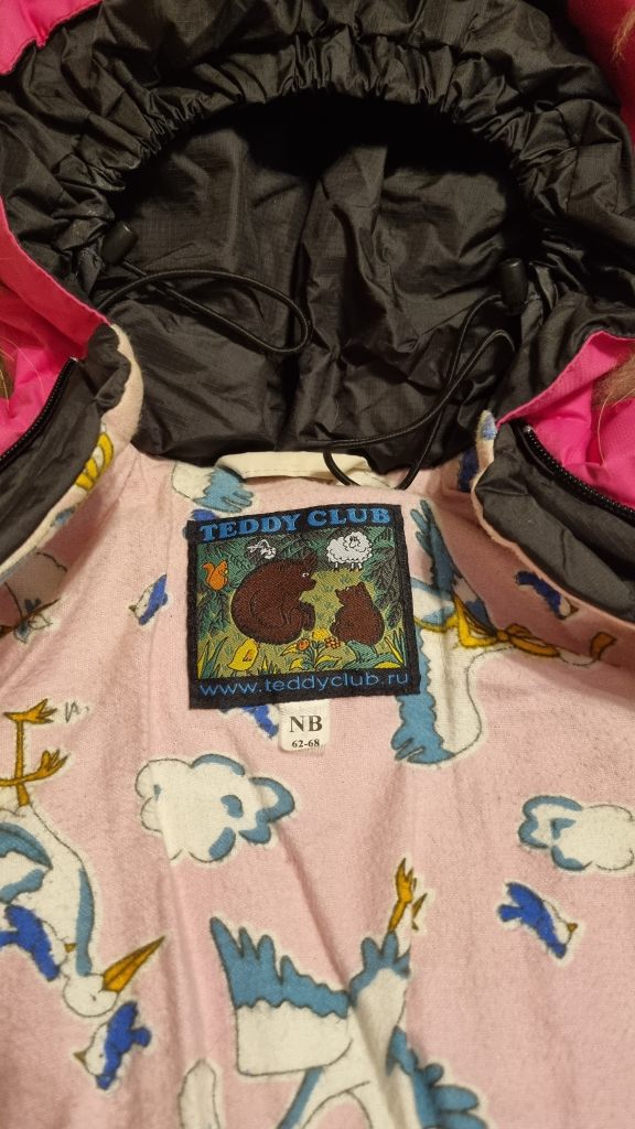 Очень тёплый пуховый конверт, с прорезью для ремня, размер 62-68.