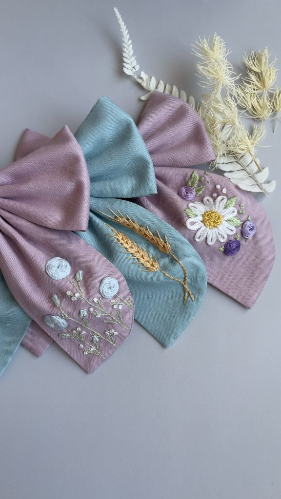 07.03.2023 Бант для волос с вышивкой ручной работы