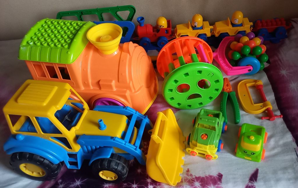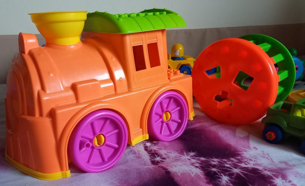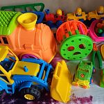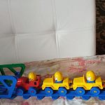 Игрушки все вымыты, в хорошем состоянии, есть небольшие дефекты, а именно, у оранжевого вагончика есть маленькие сколы снизу, в двух местах, и сверху, на крыше(на фото указала), и на некоторых колёсах незначительные потёртости после пользования.Цена указана за все игрушки.По всем вопросам, обращайтесь по указанному номеру.