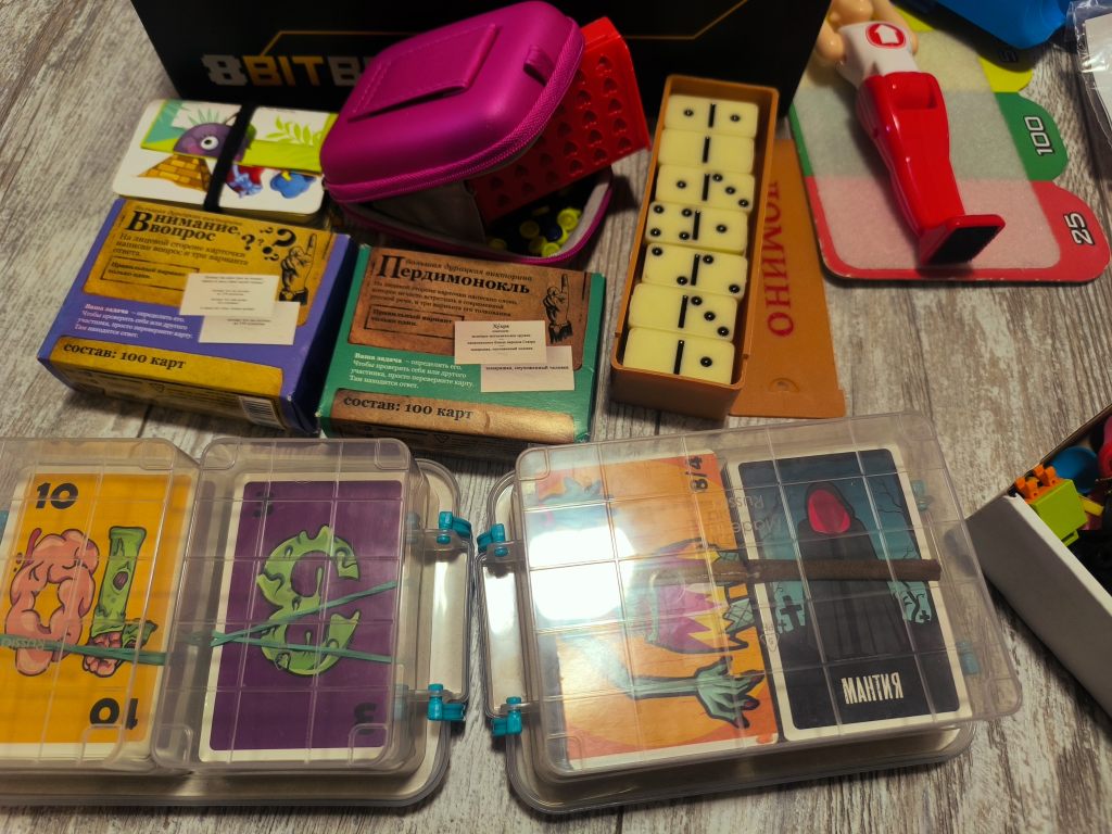 Настольные игры одним лотом, совершенно новая игра 8 бит в интернете стоит около 2 тыс., несколько карточных игр, домино, скрепыши, фанстстик гимнастик одним лотом