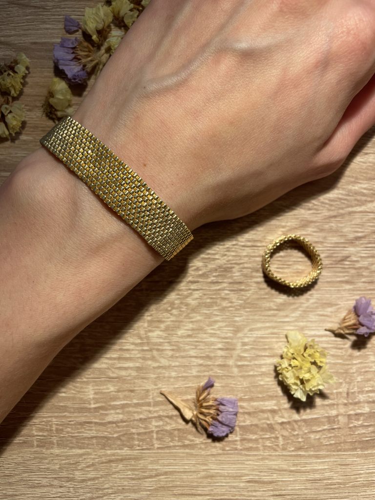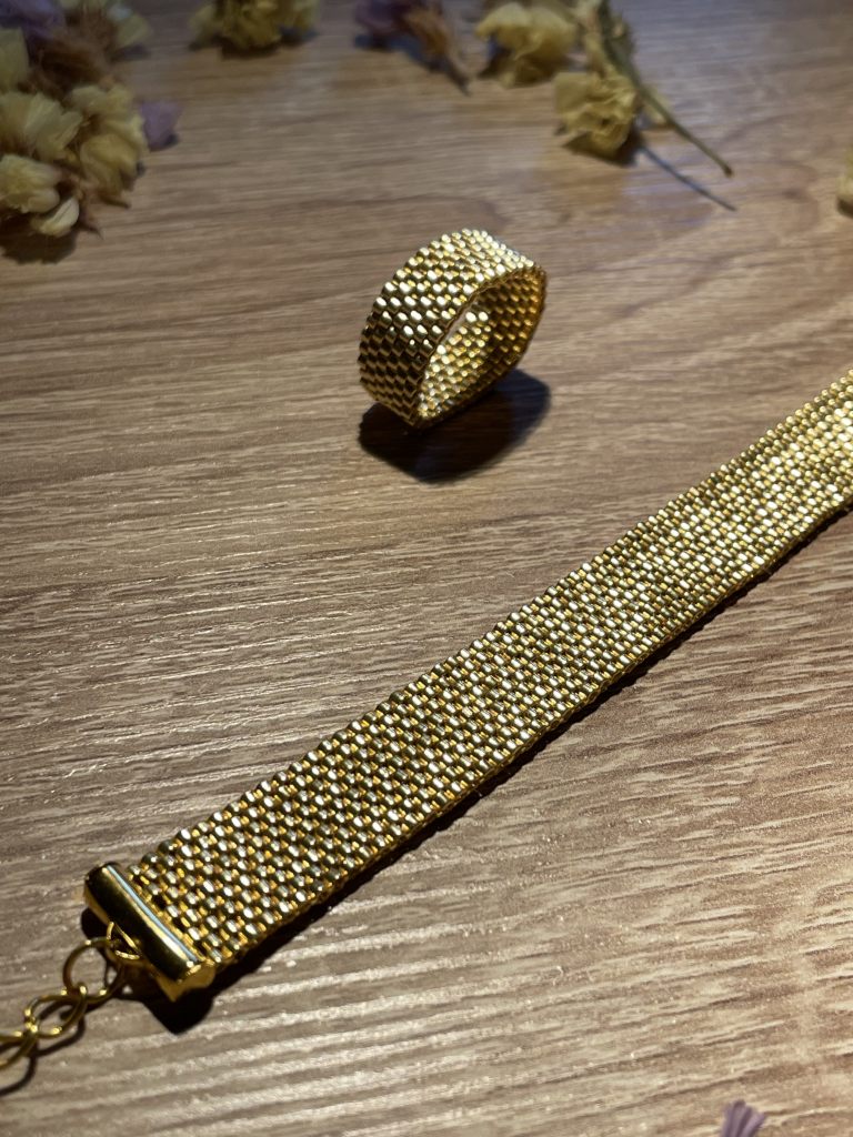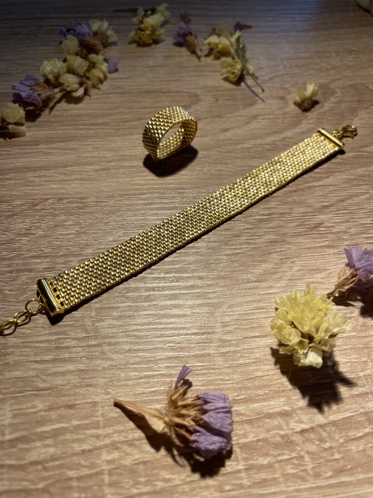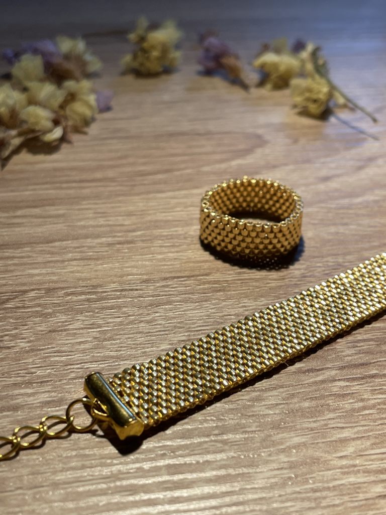 Браслет и кольцо из японского золотого бисера
