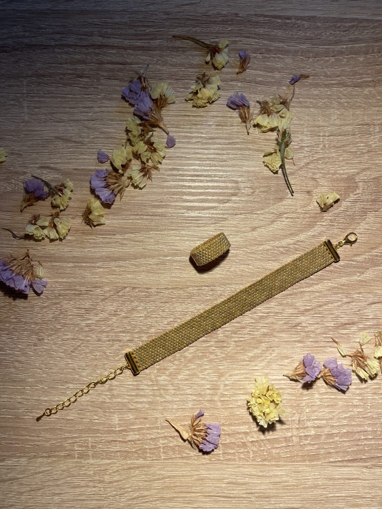 Браслет и кольцо из японского золотого бисера.