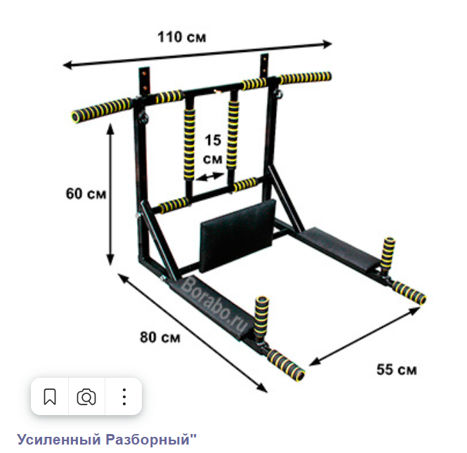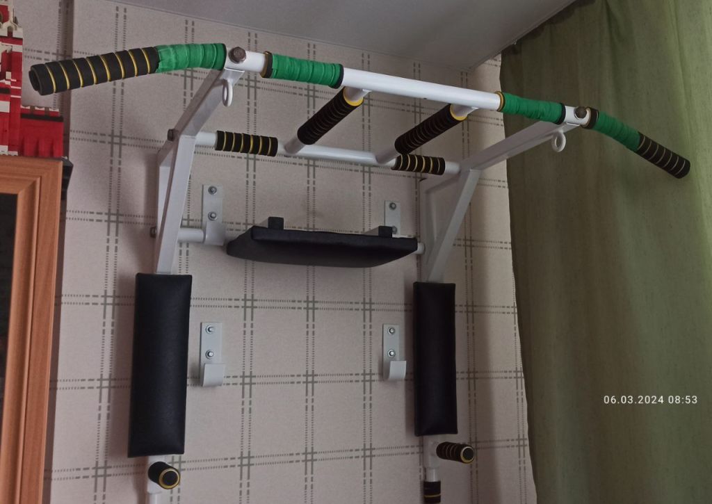 Турник-брусья-пресс 3в1 разборный. (кому интересно - BORABO Артикул: 601). Сын вырос. Турник стал не нужен. В процессе эксплуатации надорвались мягкие накладки, обмотаны специальной лентой (на фото зеленая). Крепится к стене на предварительно закрепленные крюки на нужной вам высоте. Размеры - на фото с официального сайта, там же есть описание как крепить.
