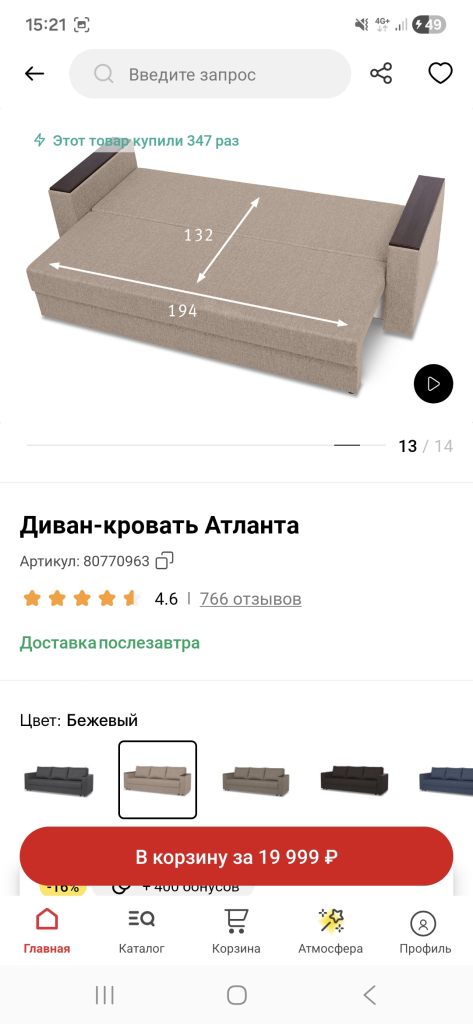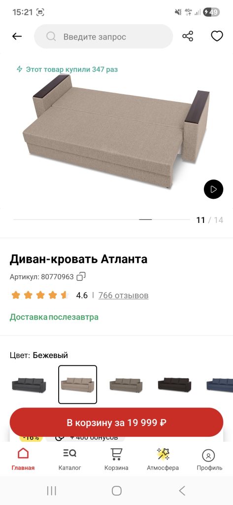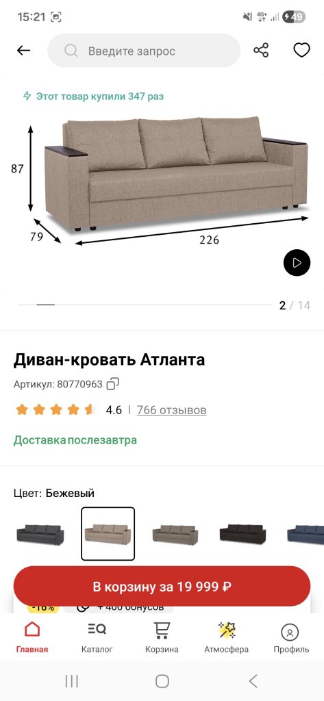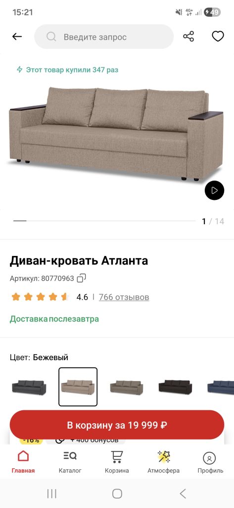 Продам диван Атланта Hoff. Куплен летом 2023 года. Состояние нового. Обивка чистая. Ящик для белья. Самовывоз! Грузового лифта нет.