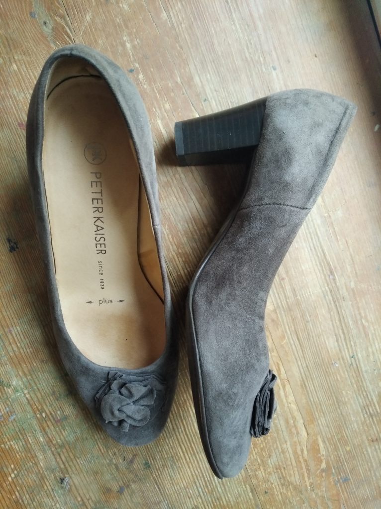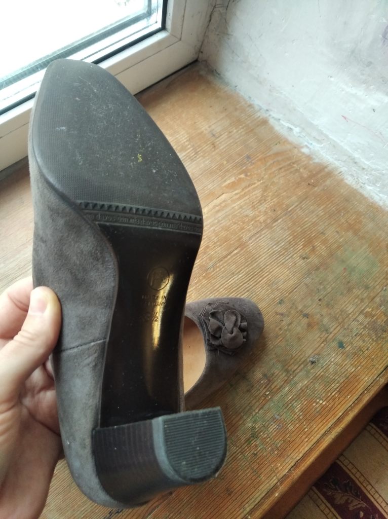 Туфли немецкие из натуральной замши, Peter Kaiser. Размер 3,5, соответствует российскому 36, увеличенная полнота, удобный устойчивый каблук. Состояние отличное, носились пару раз, стелька и набойка в идеальном состоянии. Очень мягкие и удобные. Цвет в реальности серо-коричневый, очень красивый.